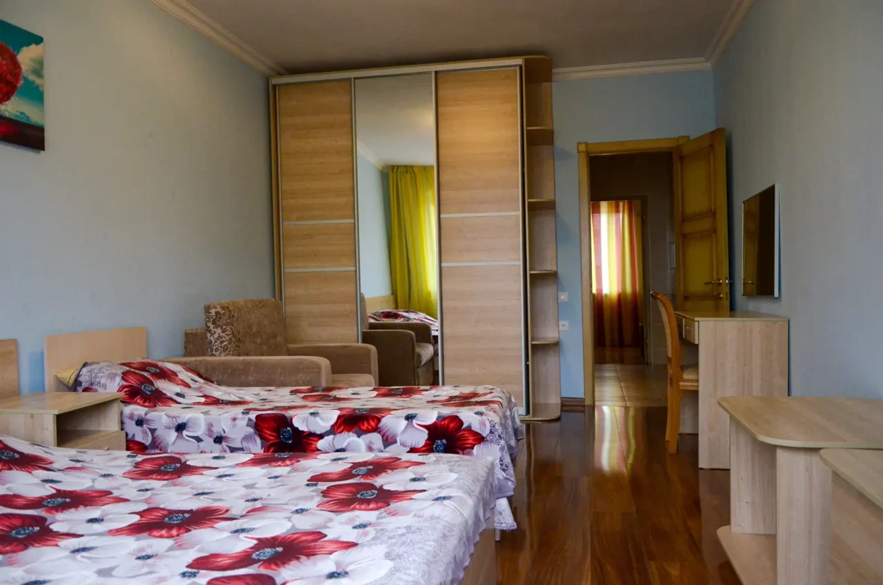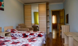 Секция из трех комнат по типу трехкомнатной квартиры. Площадь - 68 квадратных метров! Для комфортного размещения доступны три комнаты: первая спальня с большой двуспальной кроватью, вторая спальня с двумя односпальными кроватями и гостиная комната с диваном. Для удобства гостей в секции есть собственная кухня и раздельный сан. узел. В некоторых секциях есть небольшие балконы.