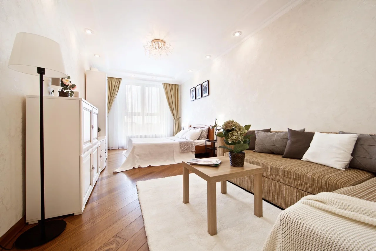 Есть все для комфортного проживания. Комната: диван, телевизор, шкаф, журнальный столик. Кухня: обеденный стол, стулья, кухонный гарнитур, электроплита, холодильник, микроволновая печь, электрочайник, посуда и кухонные принадлежности. Санузел: ванная, стиральная машина. Интернет: беспроводной Wi-Fi , кабельное телевидение.