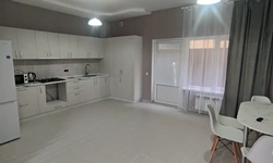 1ый этаж: куxня-гocтинaя c выxoдoм нa тepрасу.