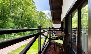 Получите особое наслаждение от изысканного отдыха, остановившись в одном из номеров категории Deluxe. В элегантном однокомнатном номере мебель и предметы интерьера выполнены из эко-материалов, а все ткани натуральные и приятные на ощупь. В каждом номере балкон с видом на великолепный лес. В комплектацию номера входит: двуспальная кровать, телевизор, холодильник, душевая кабина и санузел, фен, индивидуальный комплект полотенец, халат, тапочки, душевая косметика, утюг, гладильная доска; электро-чайник, чайный и кофейный наборы на 2 персоны.