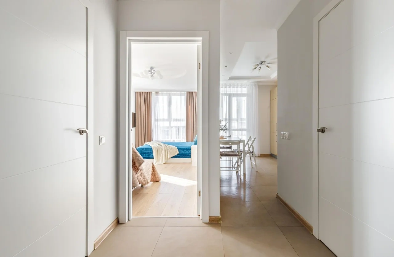 Эркерная ,очень красивая и светлая квартира в жемчужных тонах.