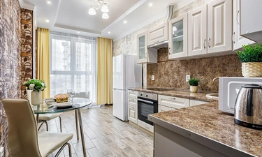 Есть все для комфортного проживания. Комната: диван, телевизор, шкаф, журнальный столик. Кухня: обеденный стол, стулья, кухонный гарнитур, электроплита, холодильник, микроволновая печь, электрочайник, посуда и кухонные принадлежности. Санузел: ванная, стиральная машина. Интернет: беспроводной Wi-Fi , кабельное телевидение.