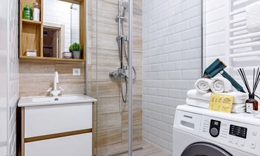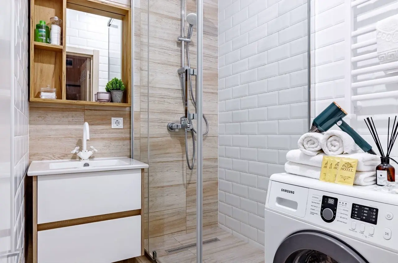 наличие стиральной машины, нормальная сантехника и магазин рядом с домом. Можно найти место для парковки даже вечером. Безкантактное заселение прекрасно