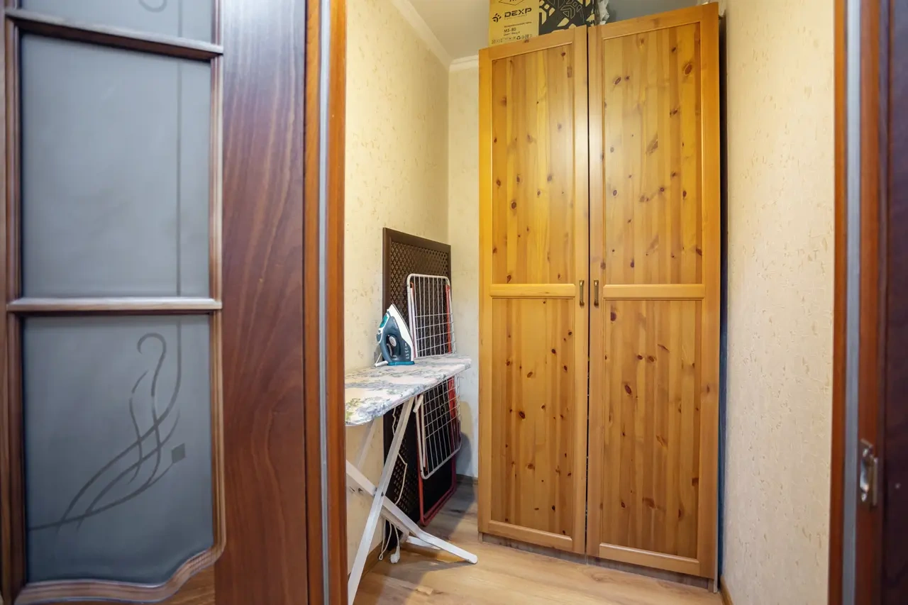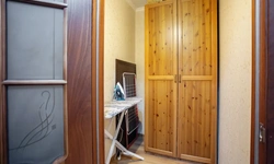 Вместительная гардеробная комната, гладильная доска, утюг, фен, сушилка для одежды.