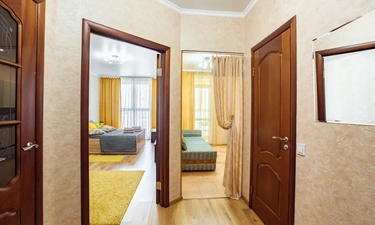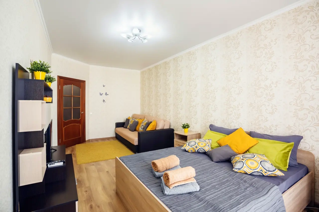 Удобное размещение от 1 до 6 человек. (большая 2-спал. кровать с ортопедическим матрасом, + два 2-спал. расклад. дивана).
