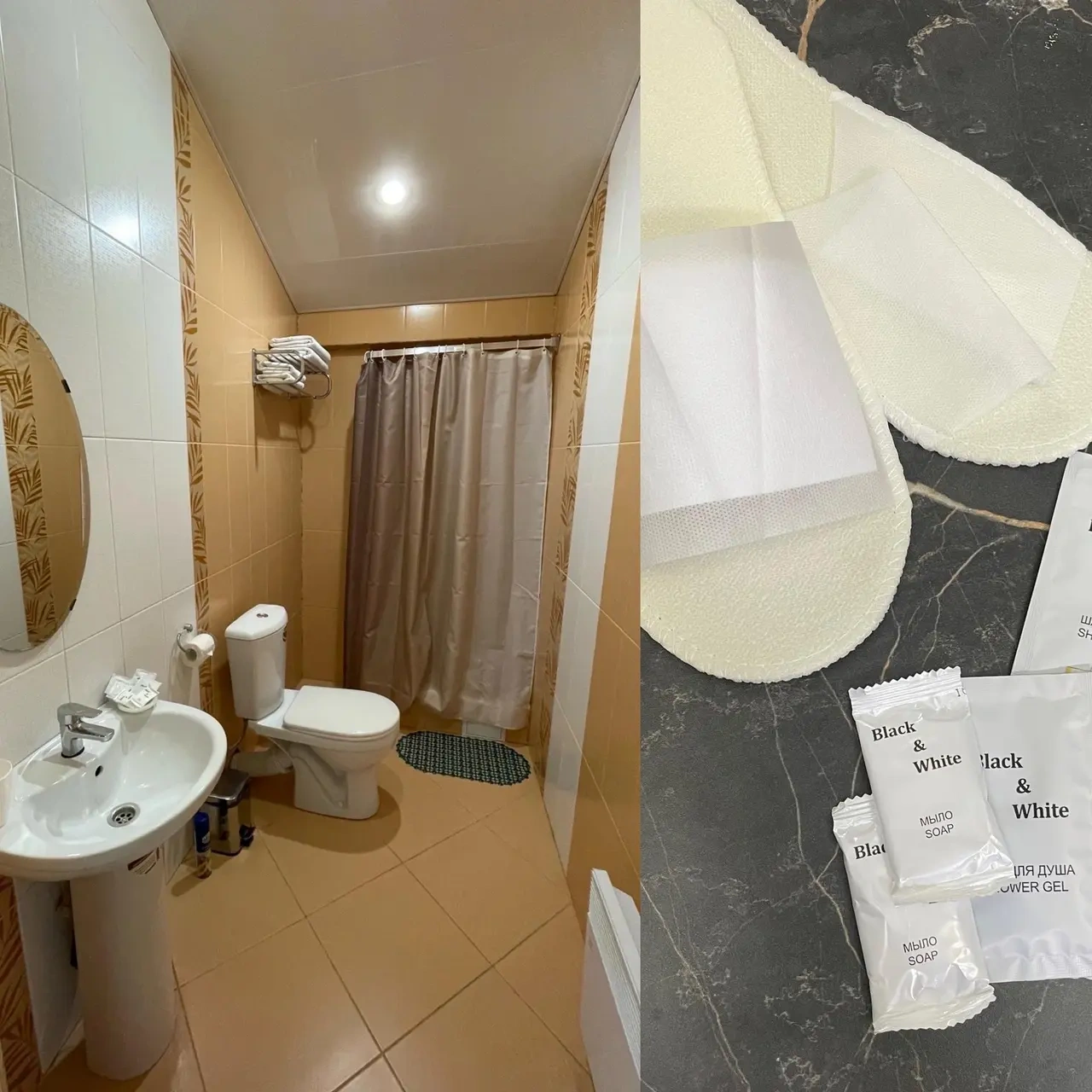 Уютный номер со всем необходимым для комфортного проживания. В оснащение номера входит: • двуспальная кровать (160х200) с ортопедическим матрасом • одеяла и подушки из синтетического лебяжьего пуха • душевая комната, оснащенная всем необходимым • туалетная косметика (мыло, шампунь, гель для душа) • фен по запросу (находится у администратора) • белоснежные полотенца • тапочки • ЖК телевизор с цифровым ТВ • бесплатный Wi-Fi доступ в Интернет • система кондиционирования • холодильник • ежедневное обслуживание номеров • общая площадь номера 16 м2