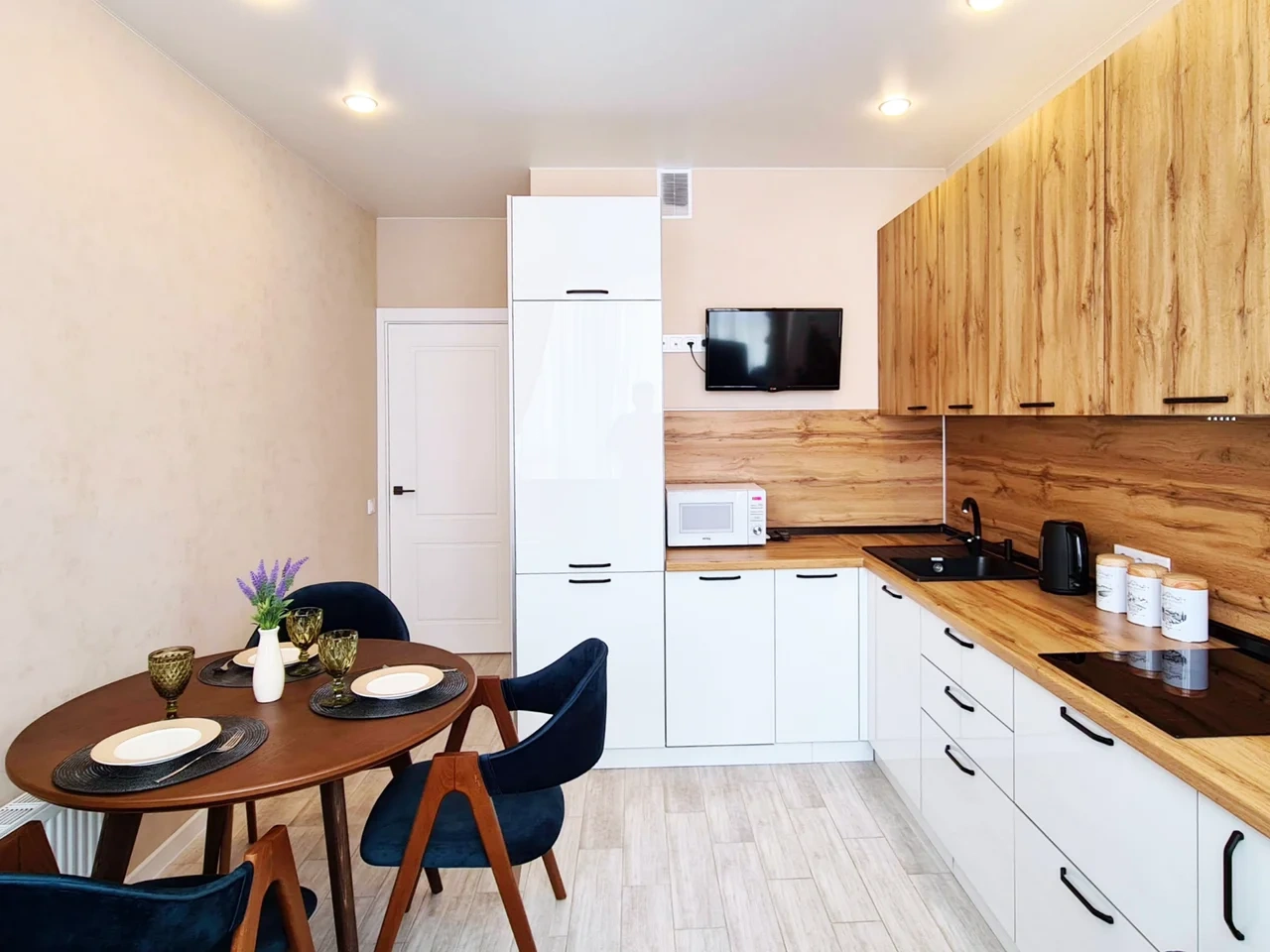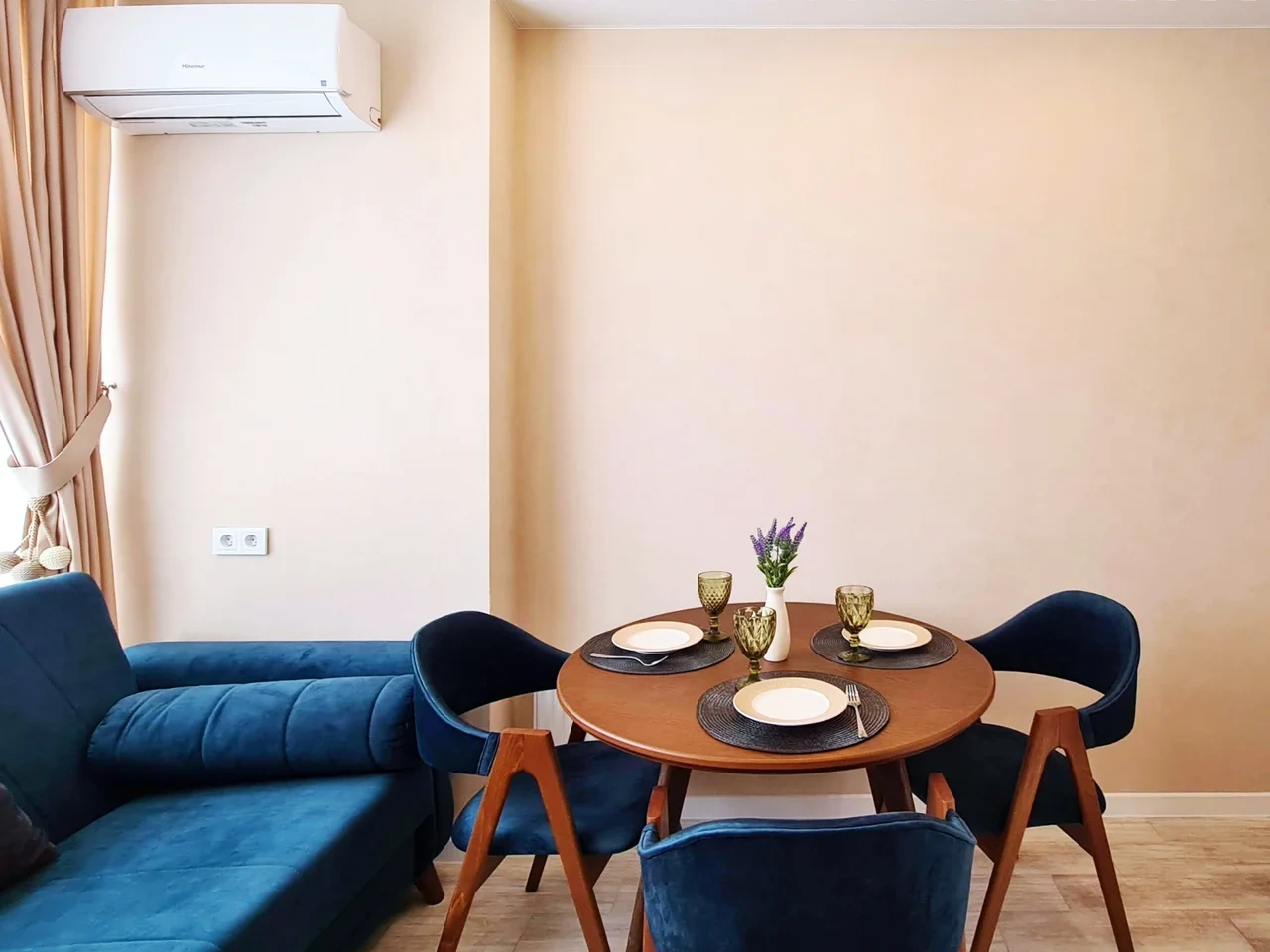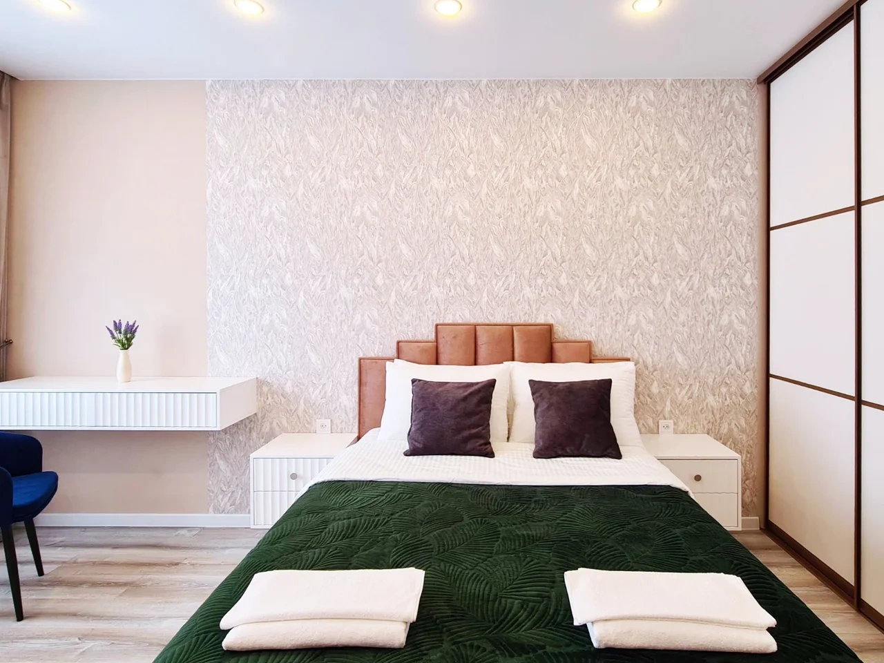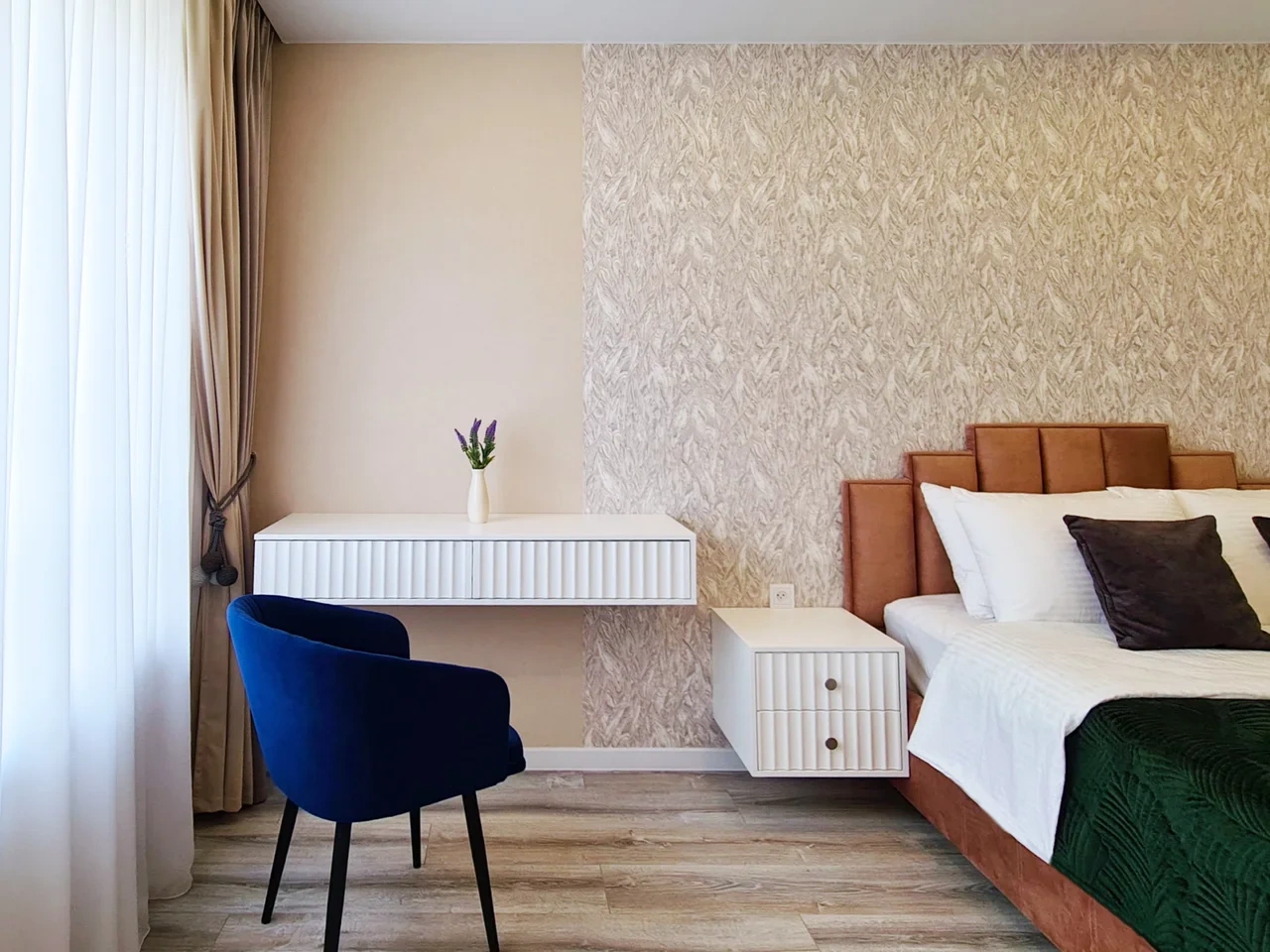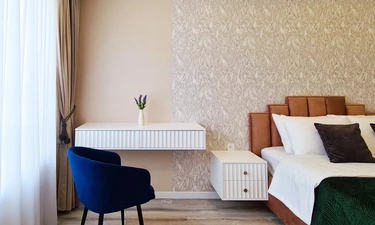 Современный спокойный стильный дизайн располагает к комфортному отдыху и работе.