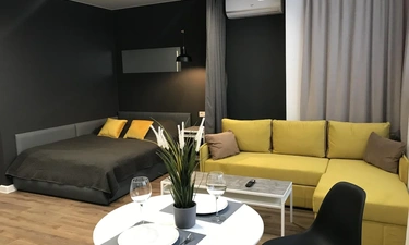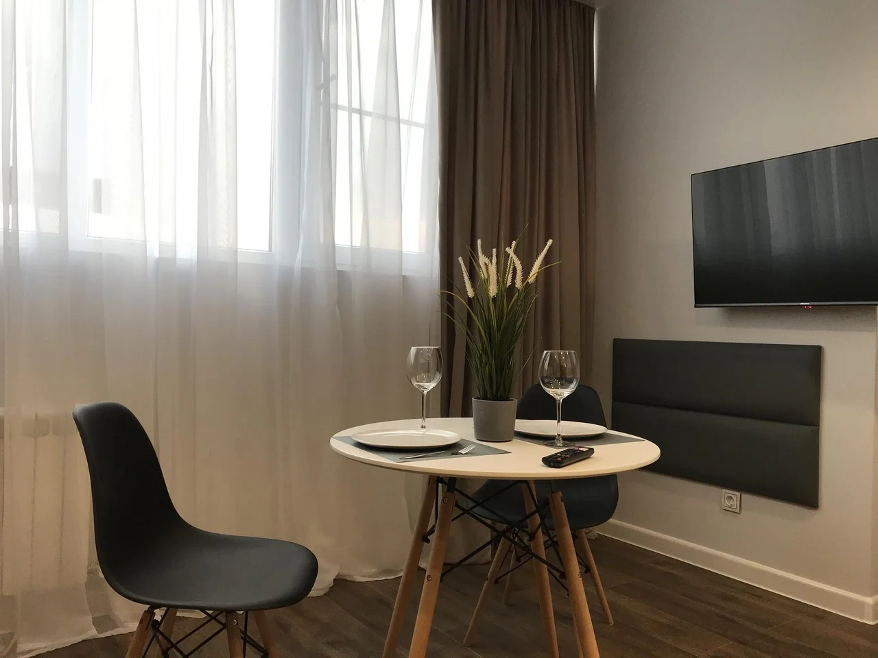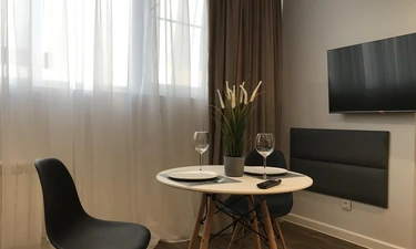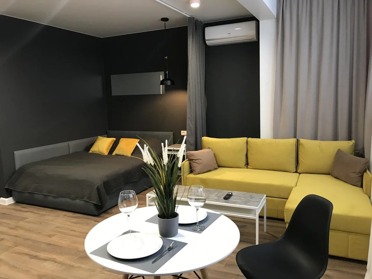В студии есть все для комфортного краткосрочного и долгосрочного проживания: телевизор (Смарт ТВ), холодильник, чайник, микроволновая печь, стиральная машина, фен, утюг, гладильная доска, кондиционер, посуда для приготовления и приема пищи.