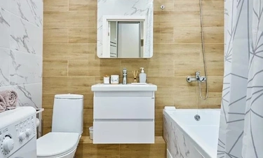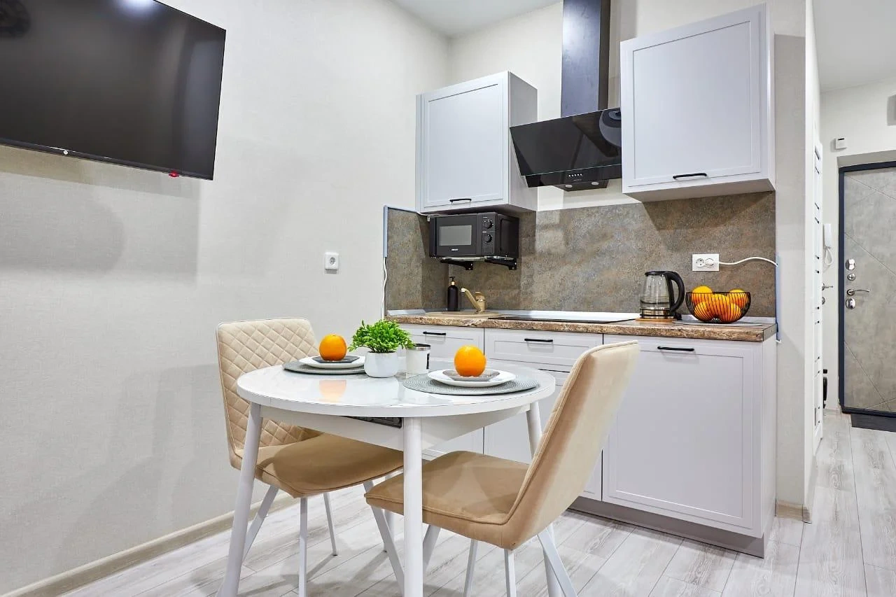Wi-Fi, телевизор с Алисой, электрическая плита, микроволновая печь, электрический чайник, стиральная машина, утюг, гладильная доска, сушилка, фен, полотенца, средства личной гигиены.