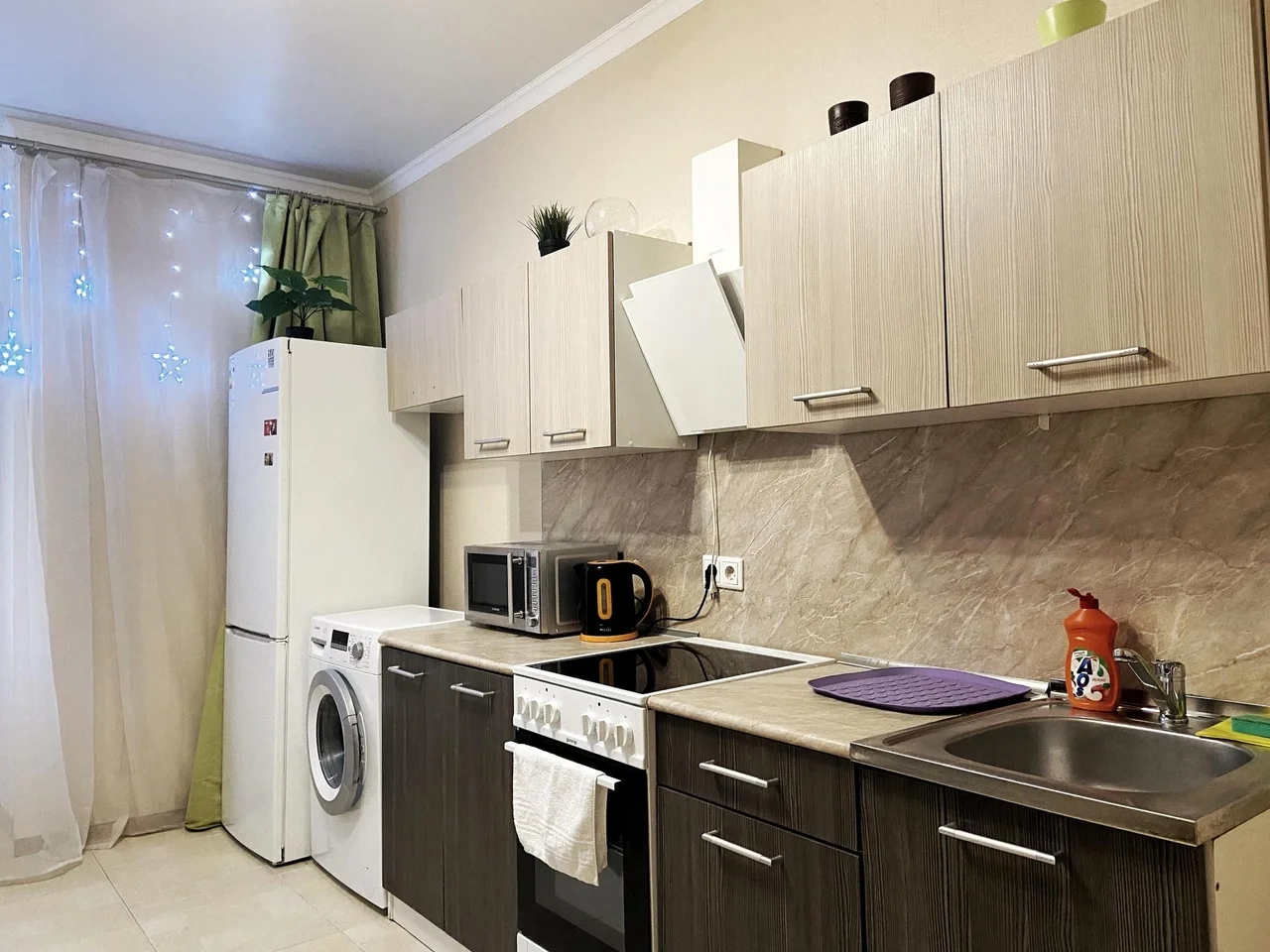 ✅плита, духовой шкаф, холодильник, микроволновая печь, чайник, набор посуды;