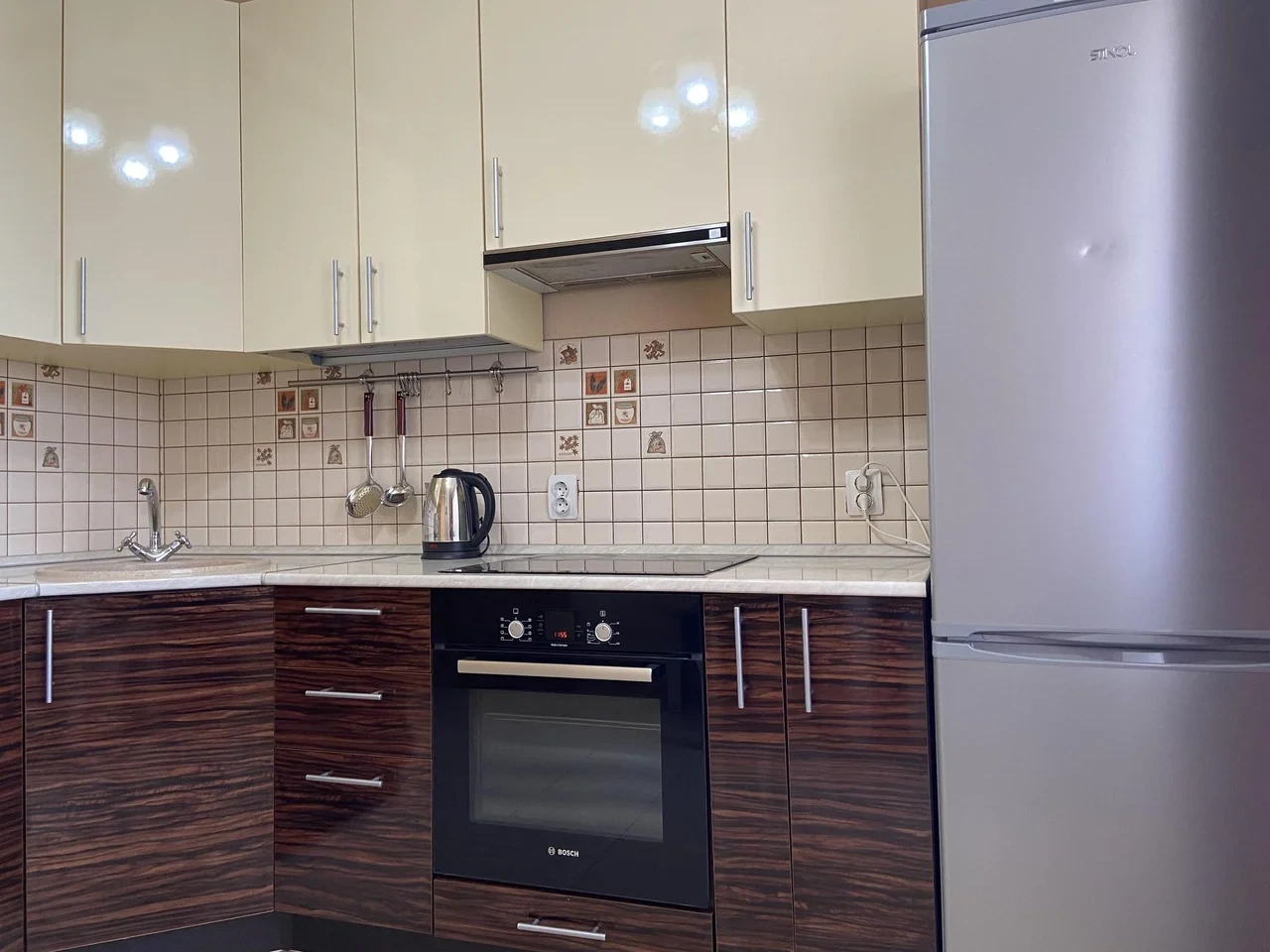 ✅плита, духовой шкаф, холодильник, микроволновая печь, чайник, набор посуды;