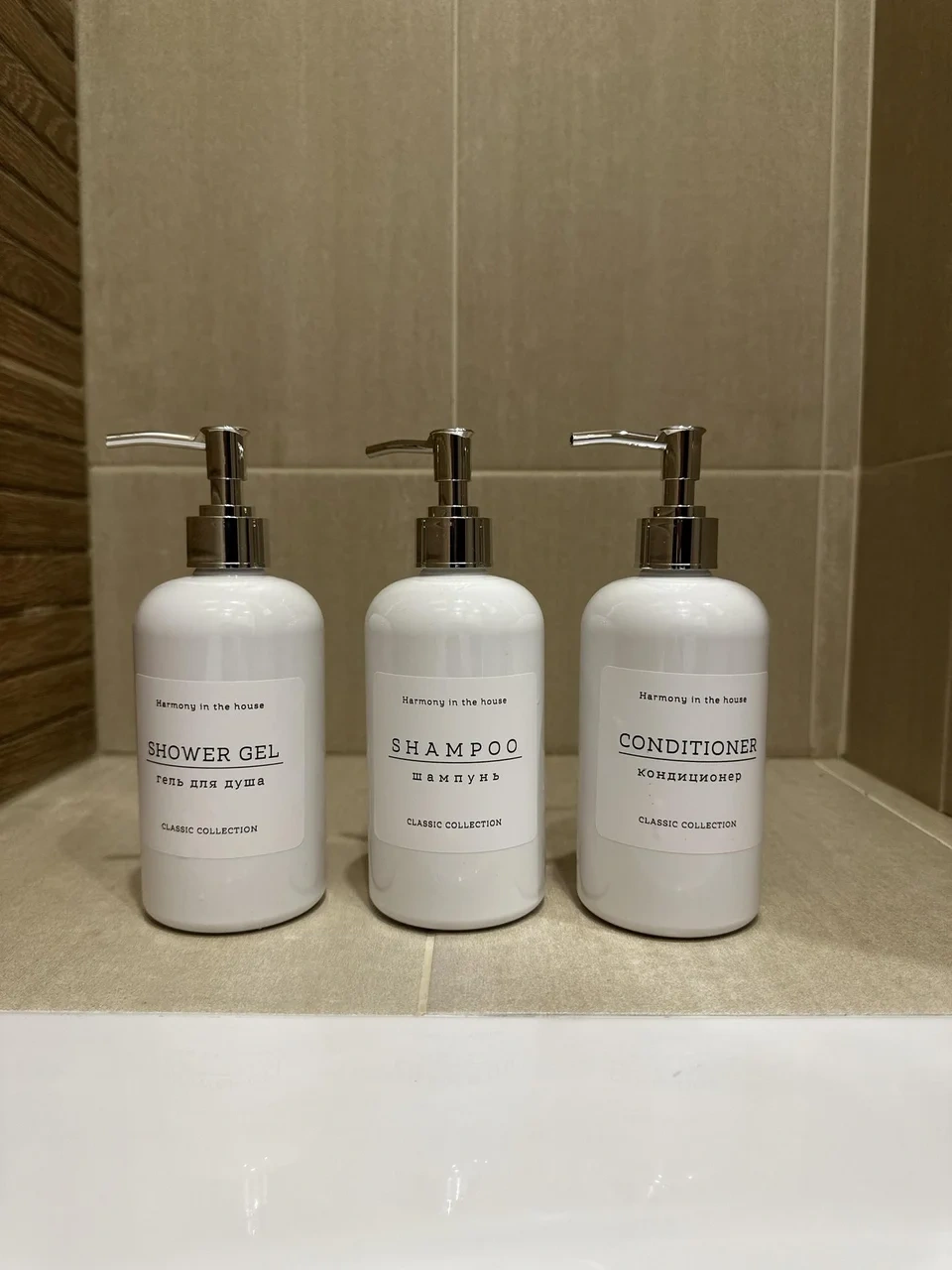 - Приветственный набор (шампунь, гель для душа, кондиционер для волос, мыло)