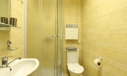 Трехместный номер в классическом стиле с собственным с/у. Оборудован кондиционером, 3 односпальными кроватями, прикроватными тумбочками, столом, стульями, светильником для чтения. Санузел совмещенный, с душевой кабиной.