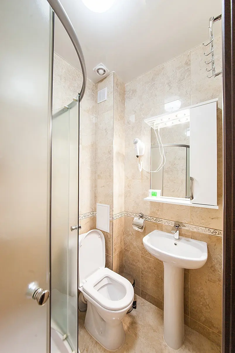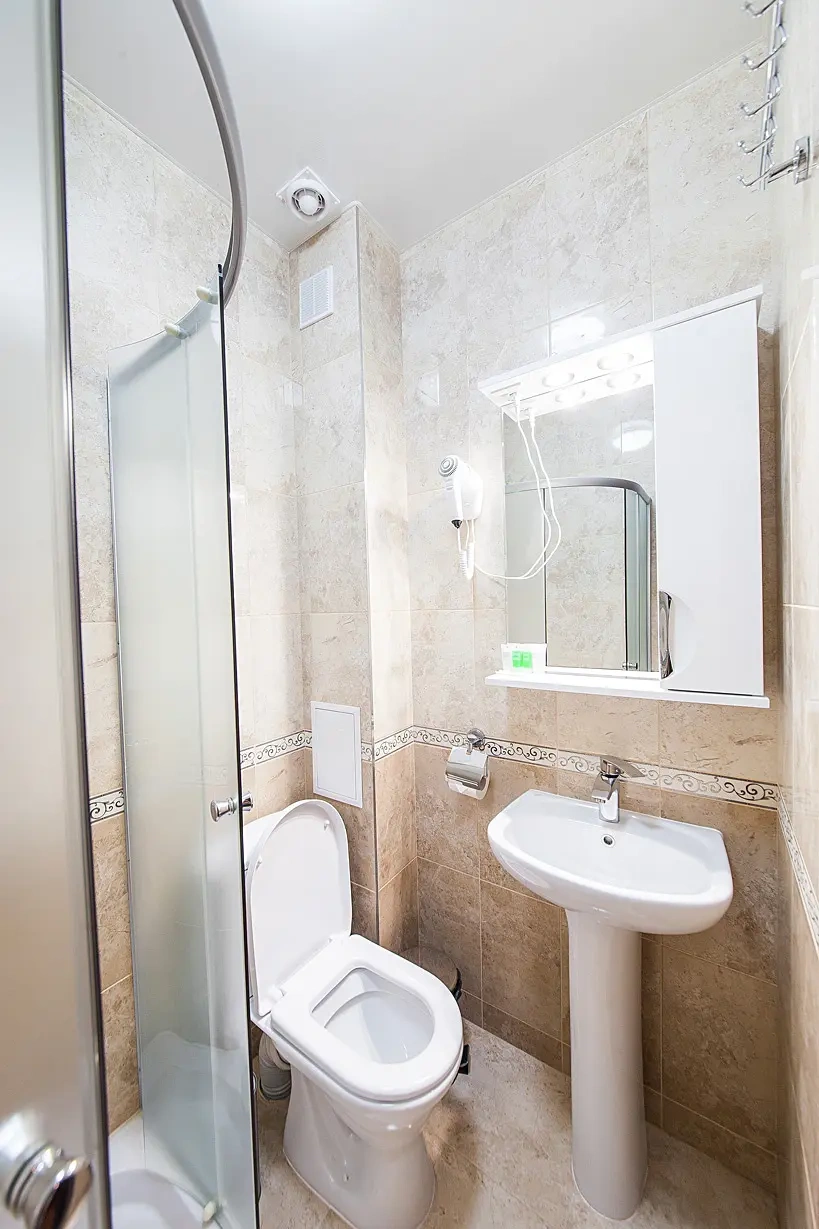 Номер по размерам не такой уж и маленький, для 2-х самое то. В номере тепло и чисто. Предметы гигиены приносили каждый день (Гель, шампунь, мыло и туалетную бумагу). И достаточно удобное местоположение.