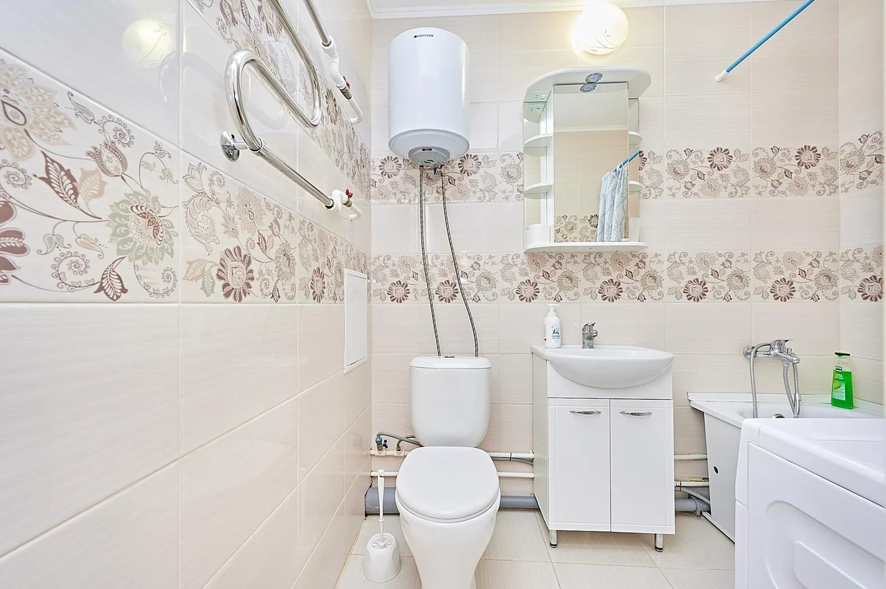 - ЖК-Телевизор, микроволновая печь, стиральная машинка, утюг, чайник, фен, сплит-система.