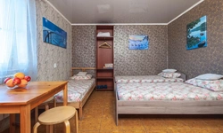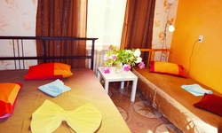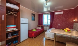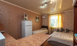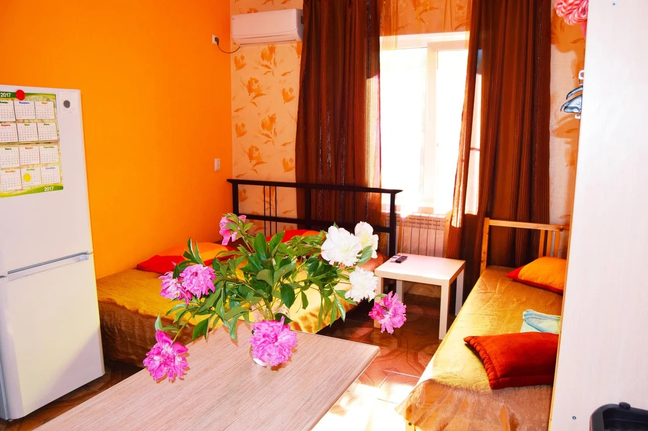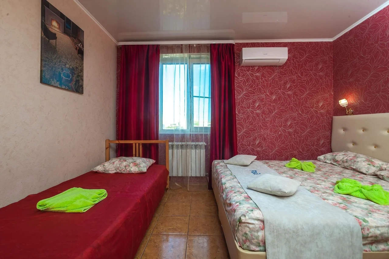 Номер-студия с тремя раздельными кроватями. Полностью оборудован для комфортного проживания, душ и сан узел в номере, ортопедические матрасы подарят хороший сон, КОНДИЦИОНЕР спасет от южного зноя, собственная оборудованная кухня в номере избавит от необходимости искать места общественного питания. LED телевизор поможет скоротать время, wI-fI поможет оставаться всегда на связи. Бронируйте!
