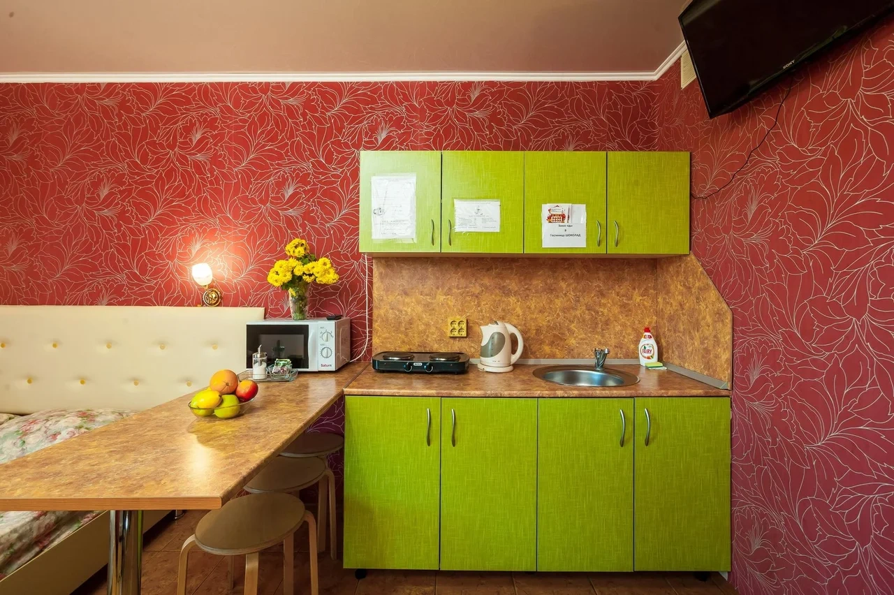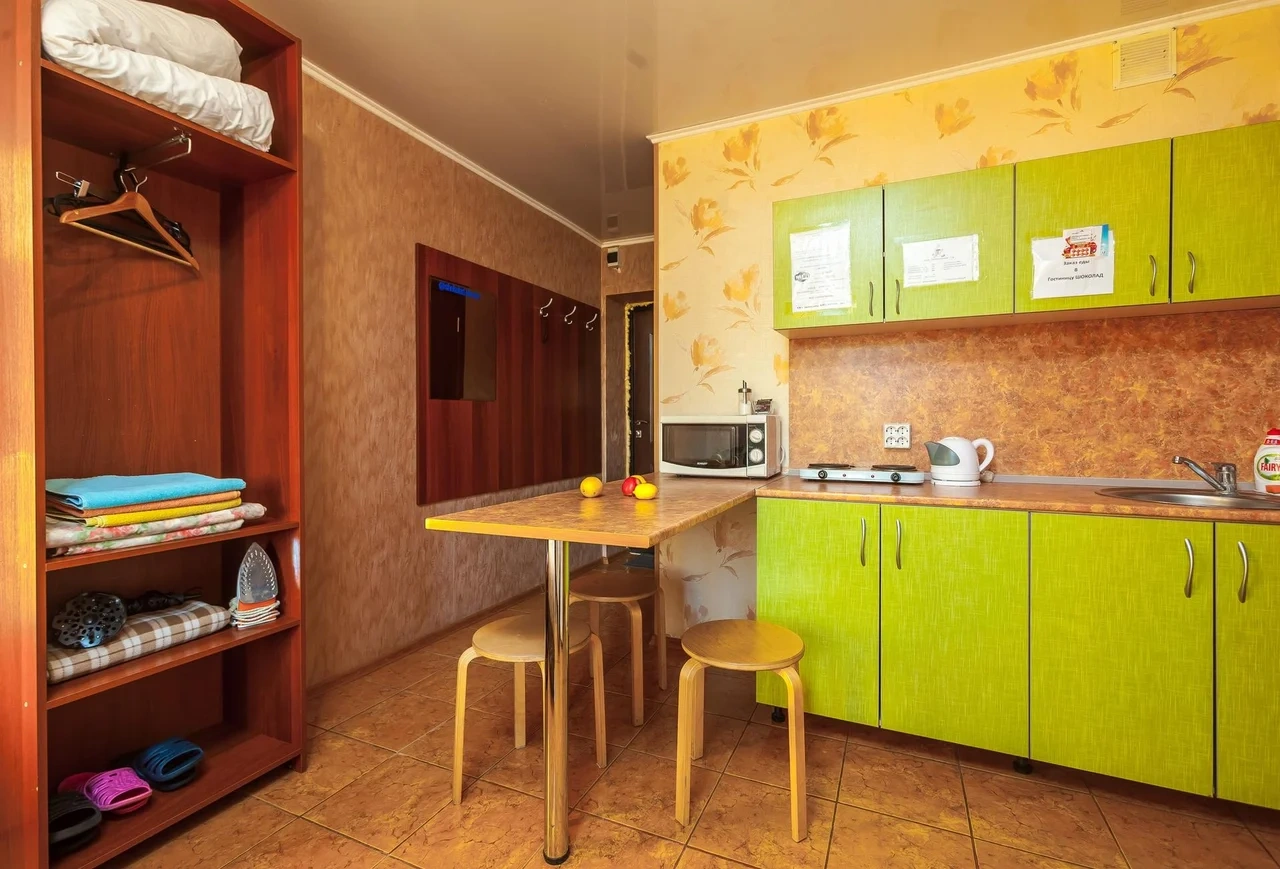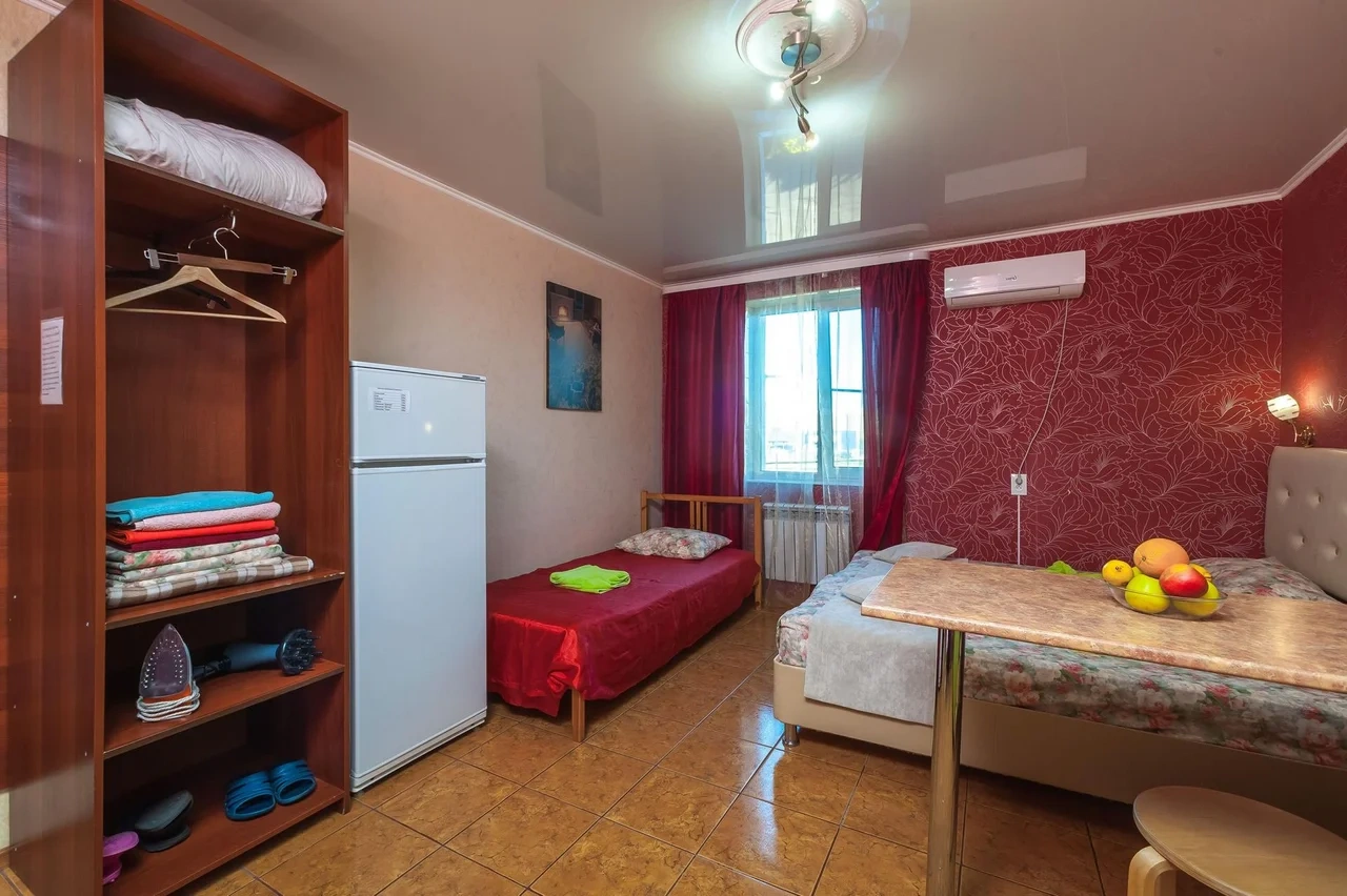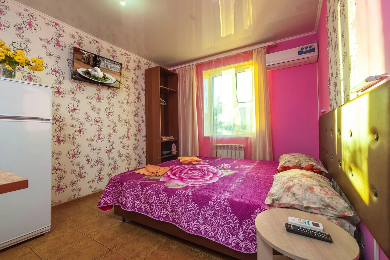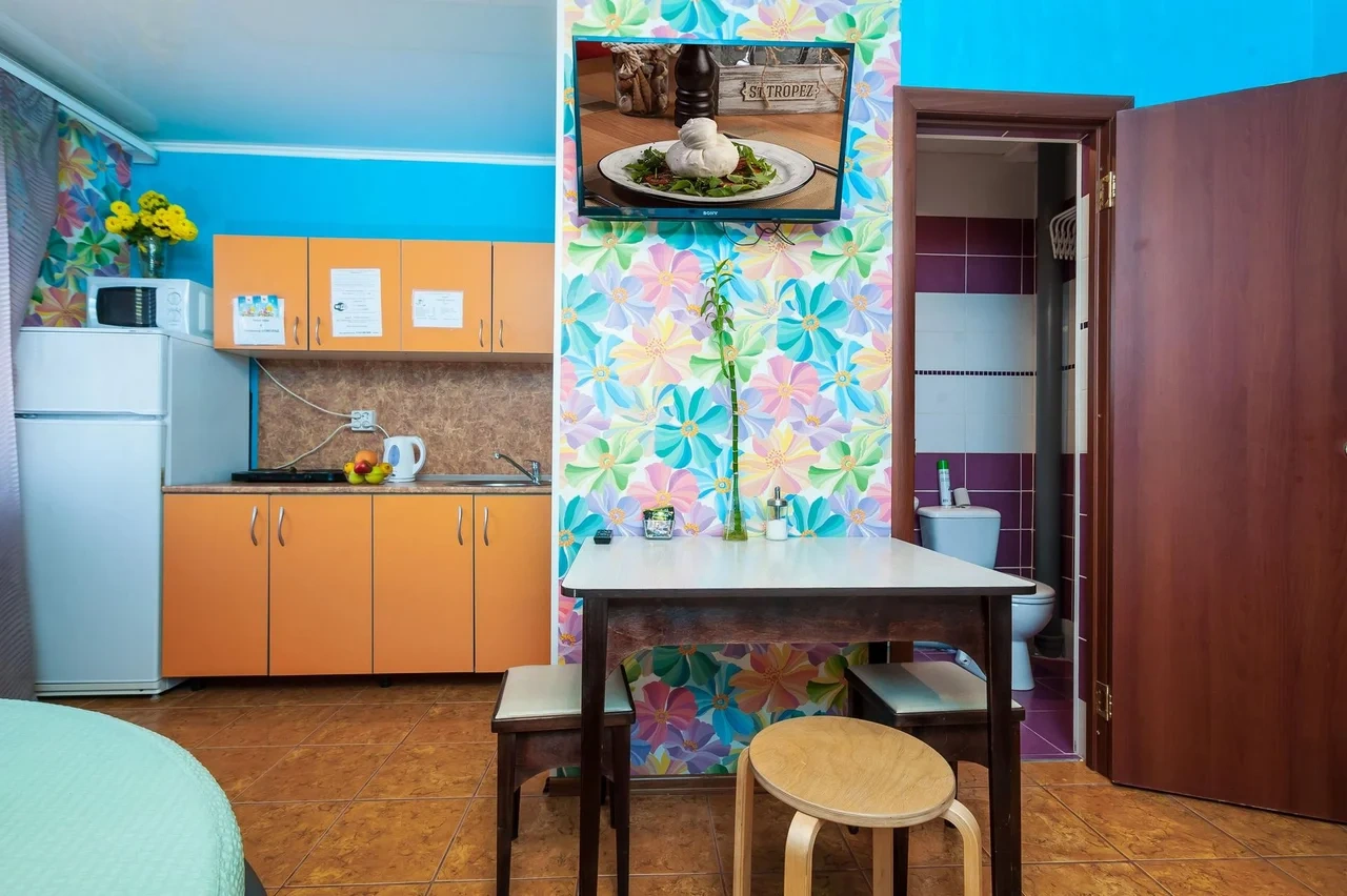 Номер-студия для ЧЕТЫРЕХМЕСТНОГО размещения. Полностью оборудован для комфортного проживания, душ и сан узел в номере, ортопедические матрасы подарят хороший сон, КОНДИЦИОНЕР спасет от южного зноя, собственная оборудованная кухня в номере избавит от необходимости искать места общественного питания. LED телевизор поможет скоротать время, wI-fI поможет оставаться всегда на связи. Бронируйте!