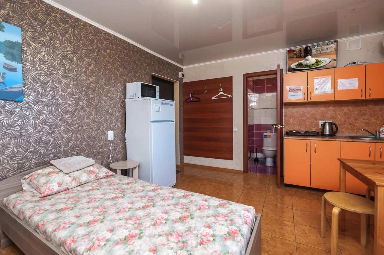 Номер-студия для двухместного или трехместного размещения. Полностью оборудован для комфортного проживания, душ и сан узел в номере, ортопедические матрасы подарят хороший сон, КОНДИЦИОНЕР спасет от южного зноя, собственная оборудованная кухня в номере избавит от необходимости искать места общественного питания. LED телевизор поможет скоротать время, wI-fI поможет оставаться всегда на связи. Бронируйте!