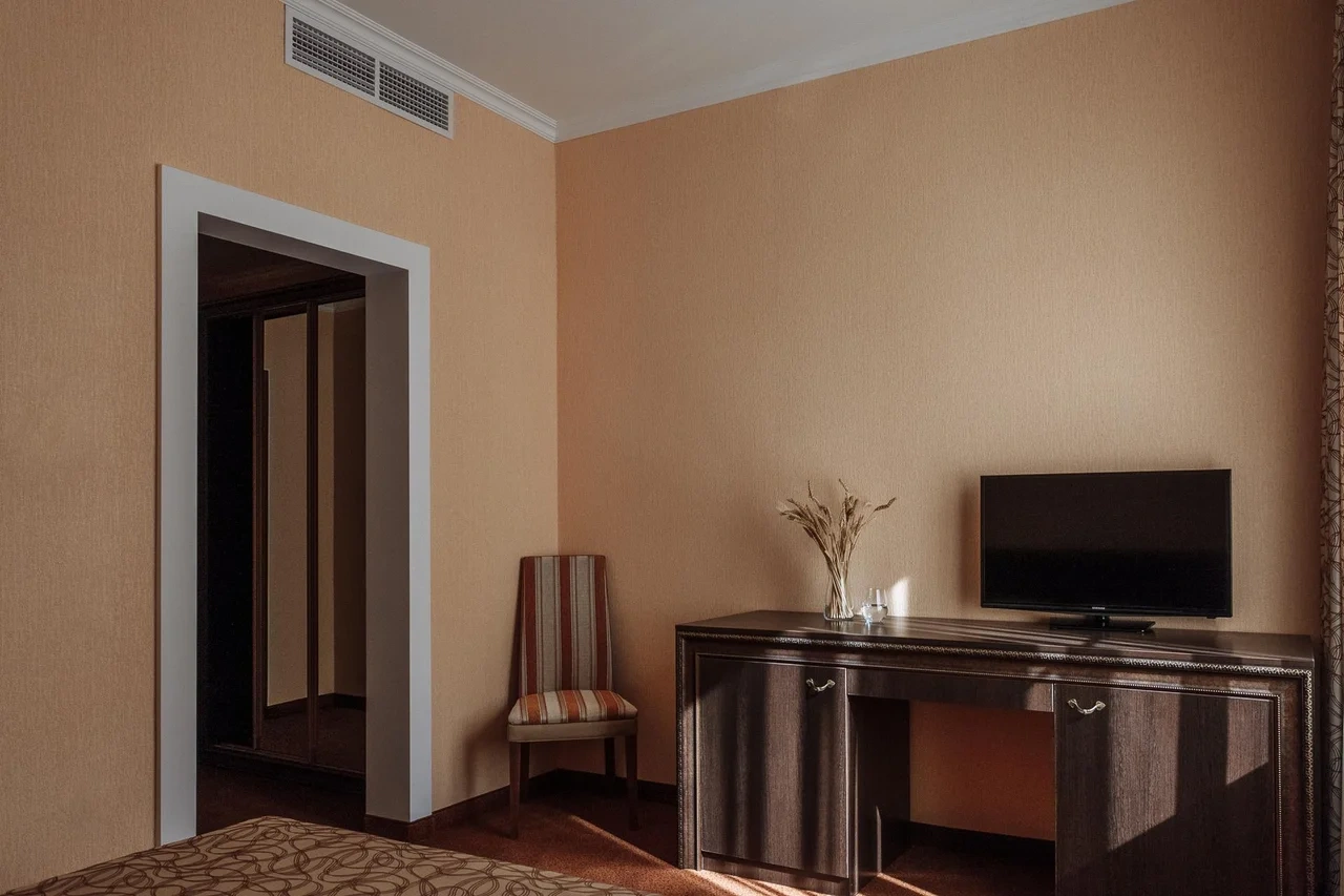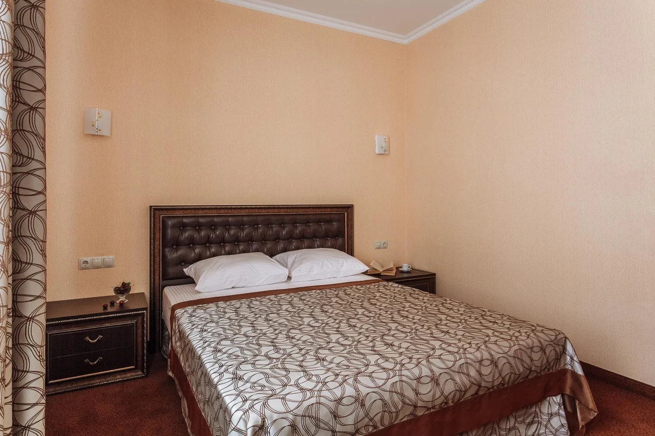 17 номеров категории «Стандарт с двуспальной кроватью» с оптимальным набором опций для комфортного отдыха: оборудованные ванные комнаты с полным комплектом банных принадлежностей, мягкие халаты и тапочки, сейфы, мини-бары, а также скоростной интернет Wi-Fi на всей территории отеля, спутниковое телевидение и система контроля доступа.