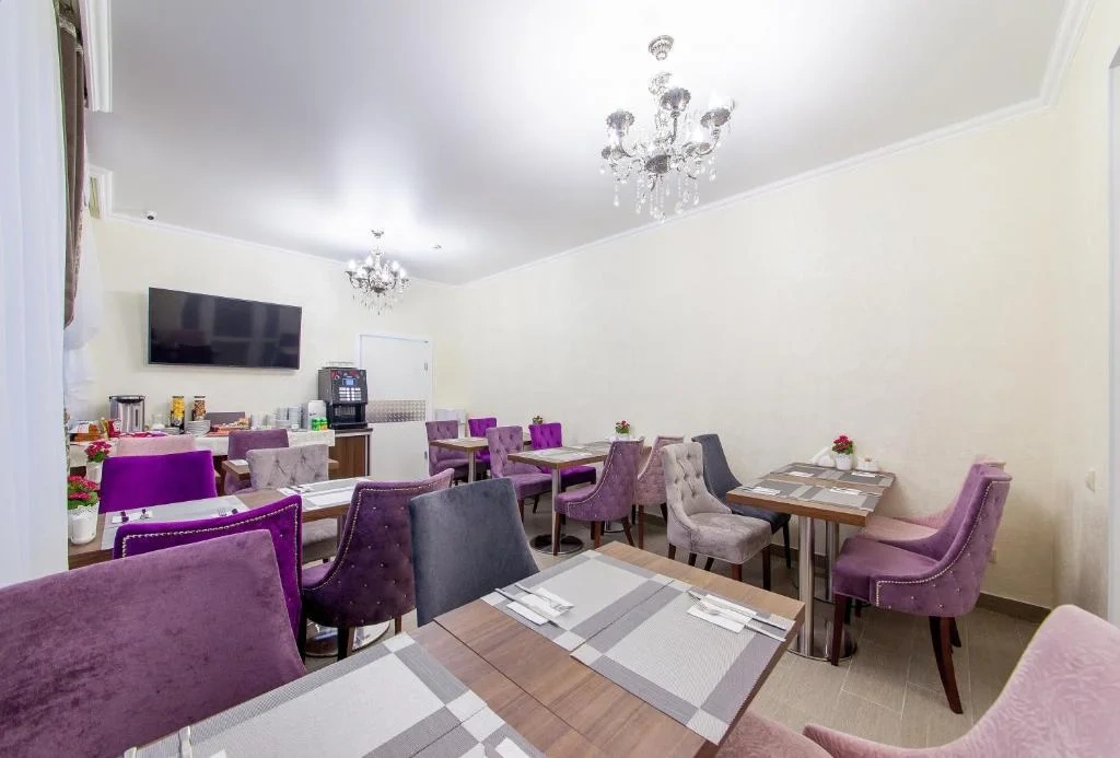 Расположен отель очень удобно. Рядом остановки трамвая, напротив Пятерочка, а также бургерная, в которой находится отличная столовая, где можно вкусно и недорого пообедать.