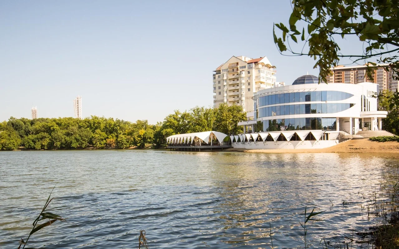 Отель находится рядом с озерами и парком стадиона "Кубань". До центра города и набережной идти минут 25-30