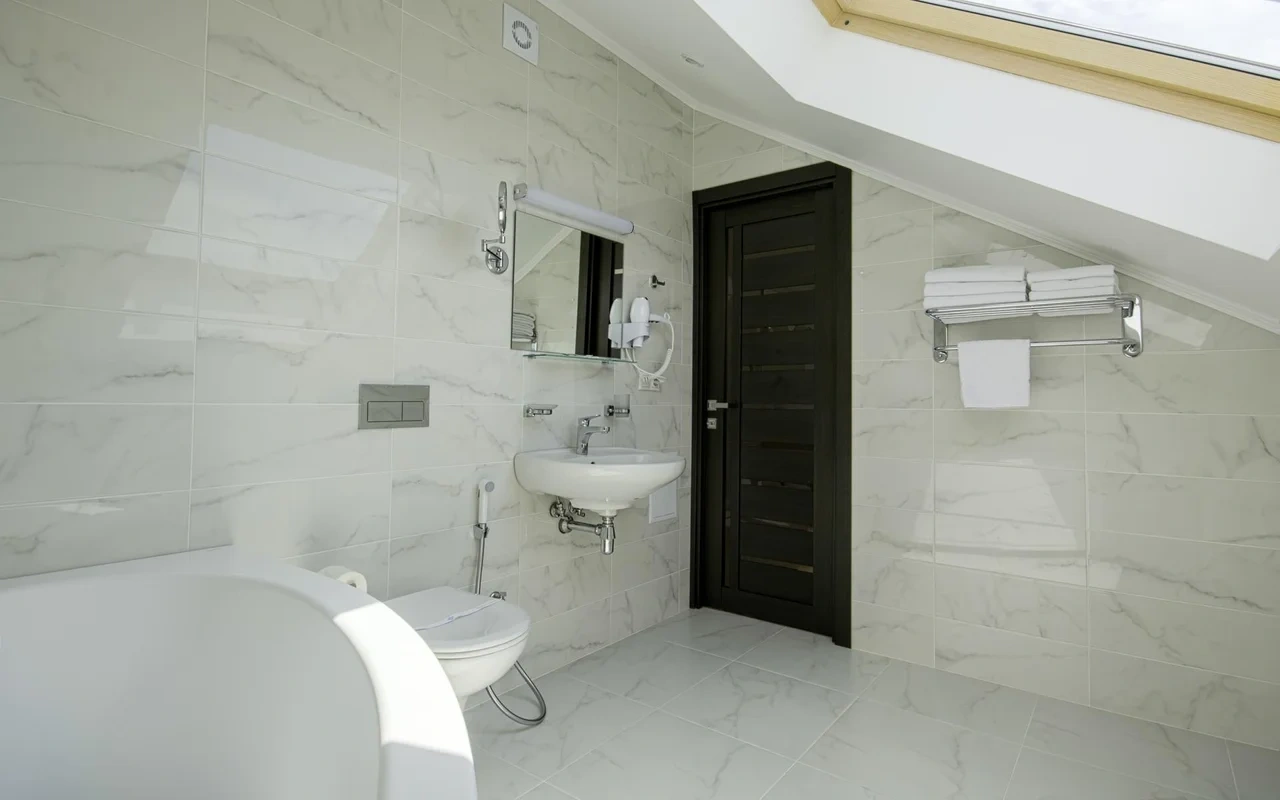 Мы на семью из 4-х человек заказывали 2-х комнатный номер. Номер чистый, мансардный этаж, в каждой комнате есть кондиционер. Ванная комната просторная.