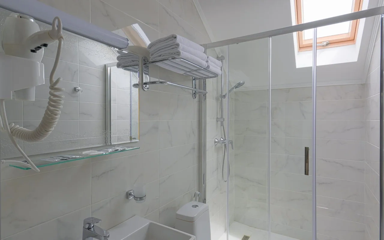 В душевой кабине текла вода на пол, когда моешься. Но это не доставило много хлопот.