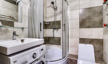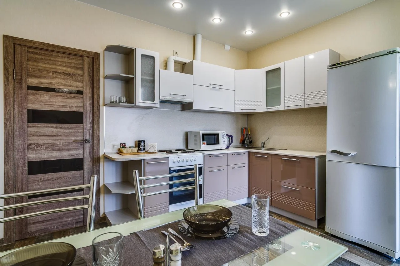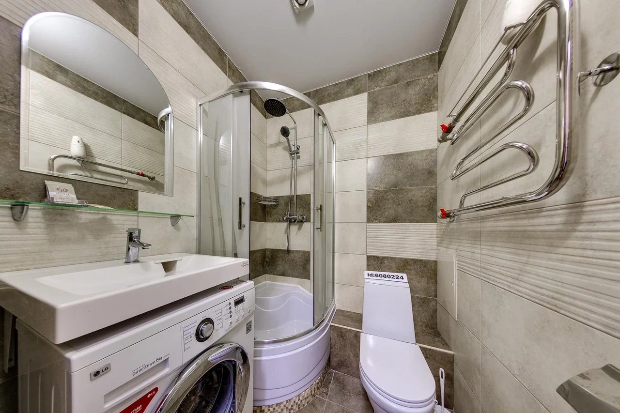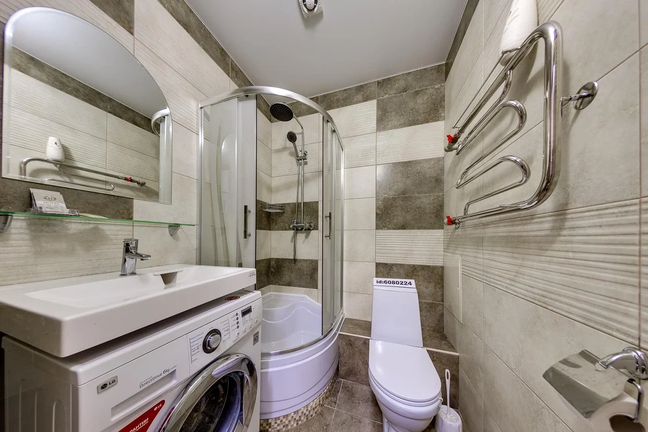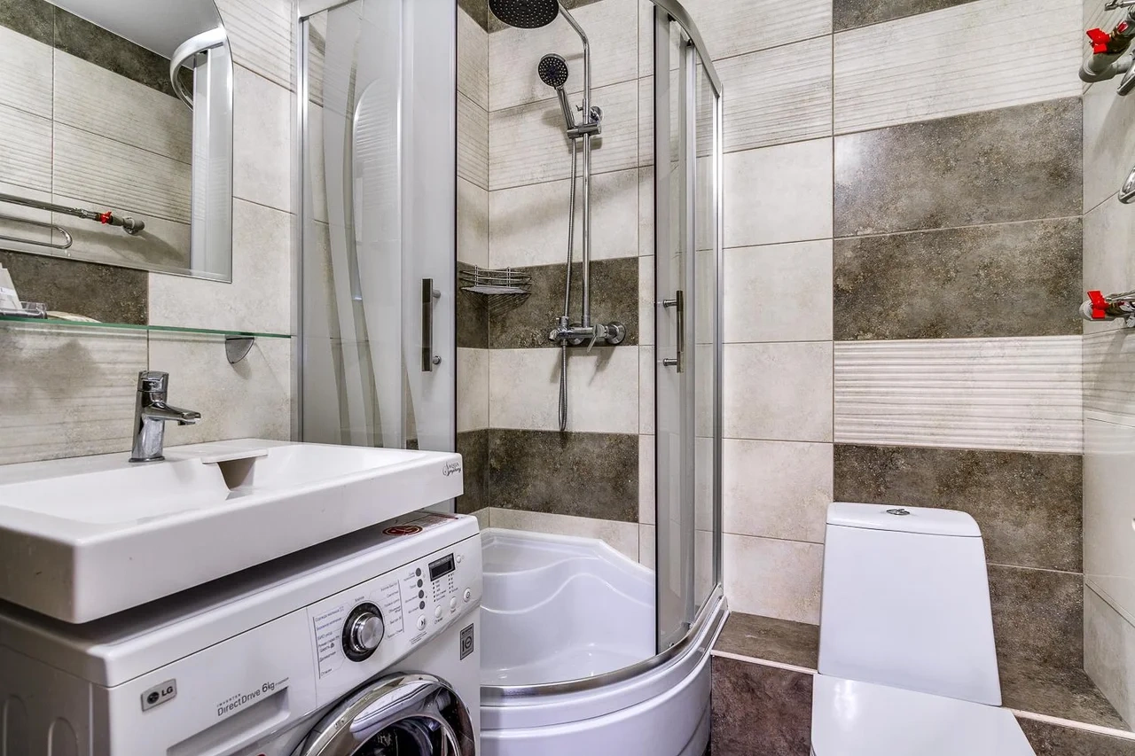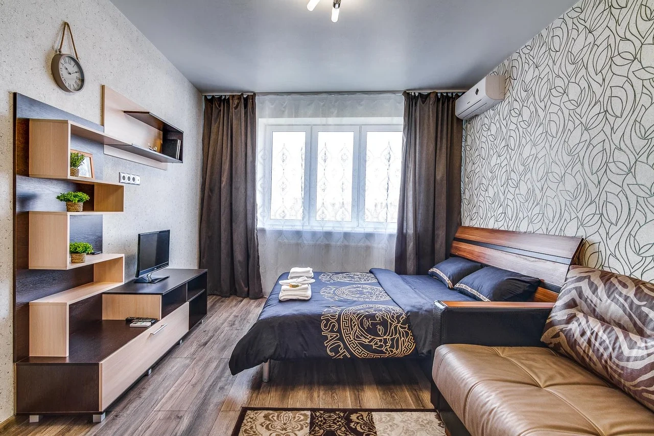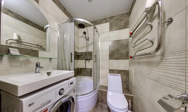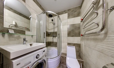 Вся необходимая техника: стиральная машина, кондиционер, микроволновая печь, варочная панель, холодильник, фен, телевизор.