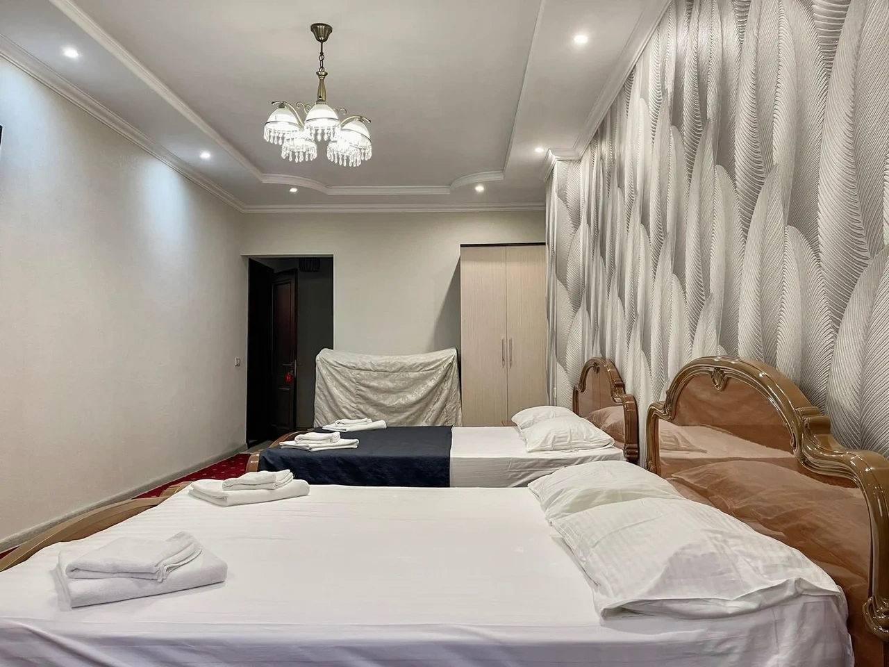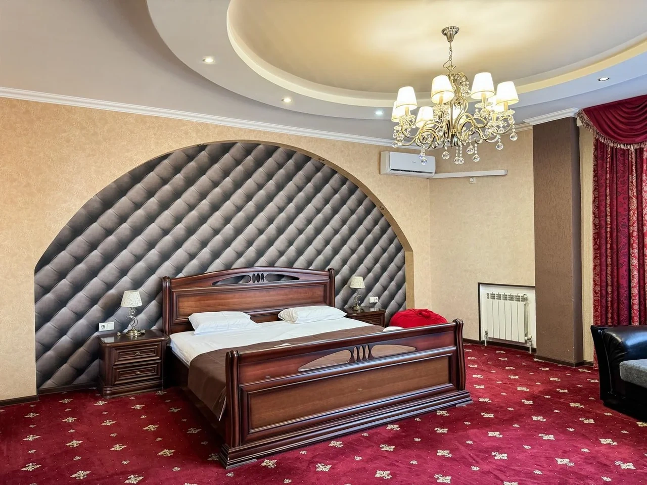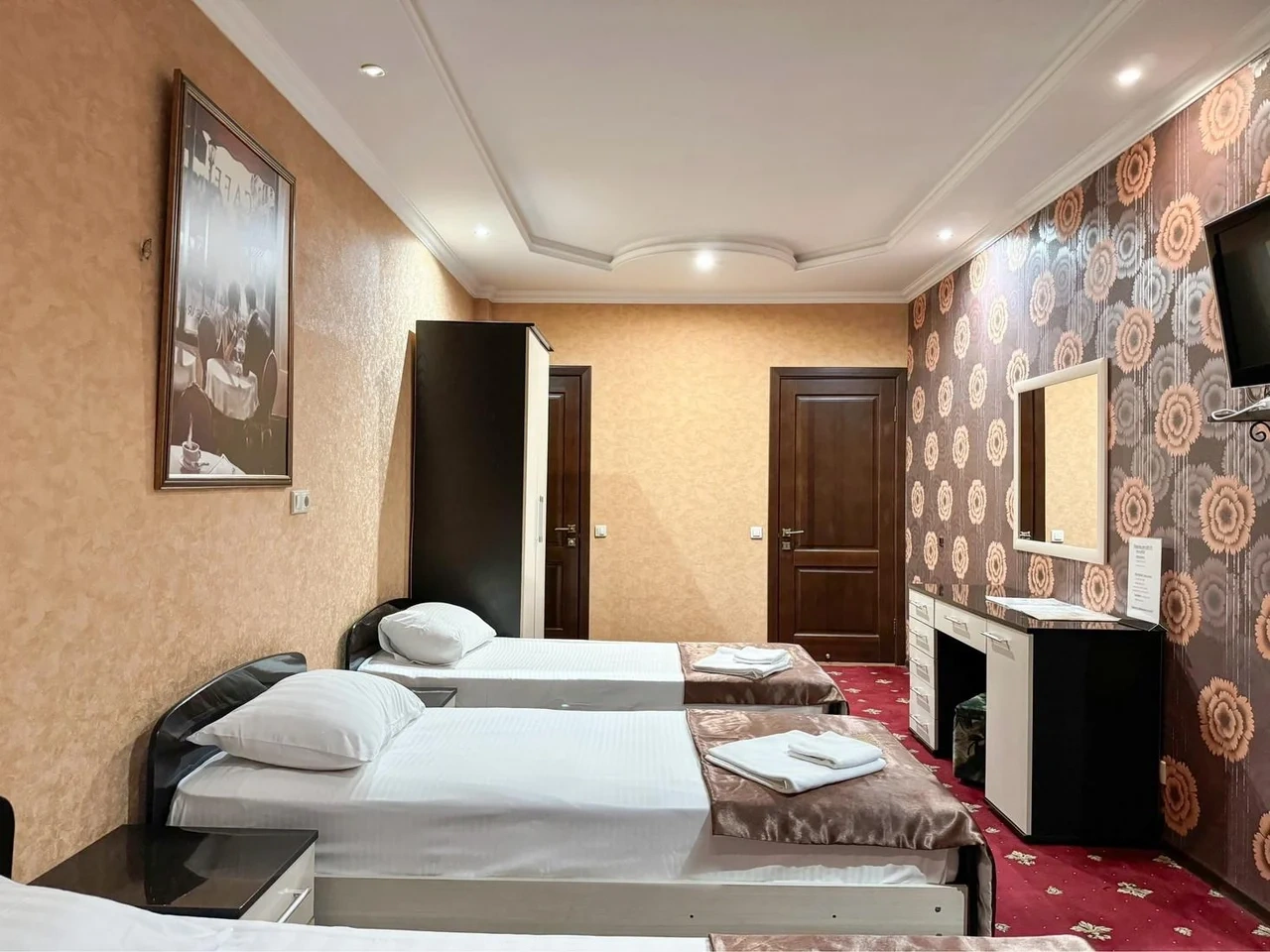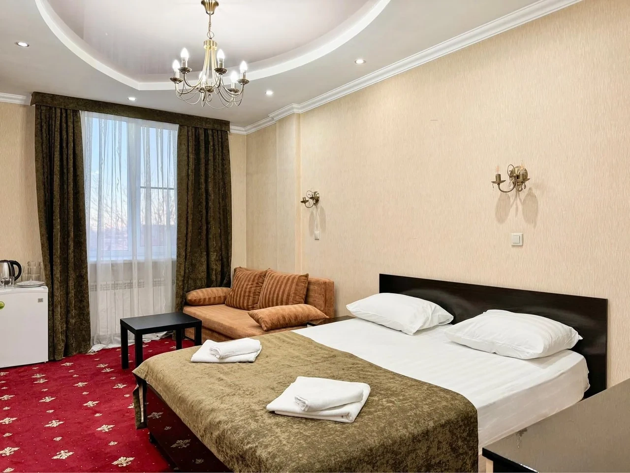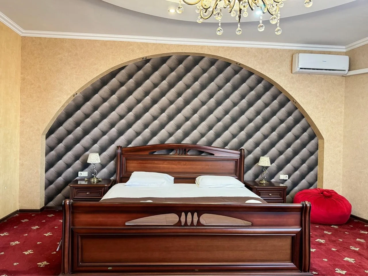 В номере воняет куревом! Вечером внизу (хозяева видимо) жарят шашлык и запах этого шашлыка вместе с дымом в номере. Мебель вся уставшая. Кровать для супружеского долга вообще не подходит, так как если на ней что то делать, то будет слышать все три этажа отеля. Матрац убитый. В санузле стоит джакузи и объявление что она не работает, но это полбеды. Воды в номере нет вообще, она просто идёт тонкой струечкой. Но это ещё тоже ладно, подмыться ещё хоть как то можно. Но как стоять в этой ванной вообще не понятно, так как у джакузи пол не ровный, нужно стоять, точнее сидеть в уголке ванной возле крана, так как вода не идёт совсем. Короче это не гостиница, а недоразумение. Слышимость в гостинице тоже нормальная. Заехали ночью люди всю ночь ругались, орали, но им даже никто не сделал замечание потому что вся администрация спит. Остановиться можно только если едешь на юг на одну ночь и то если не сильно вспотел, так как мыться и спать тут невозможно!!!