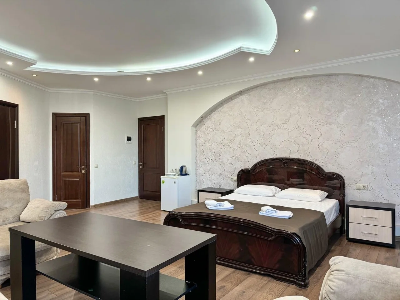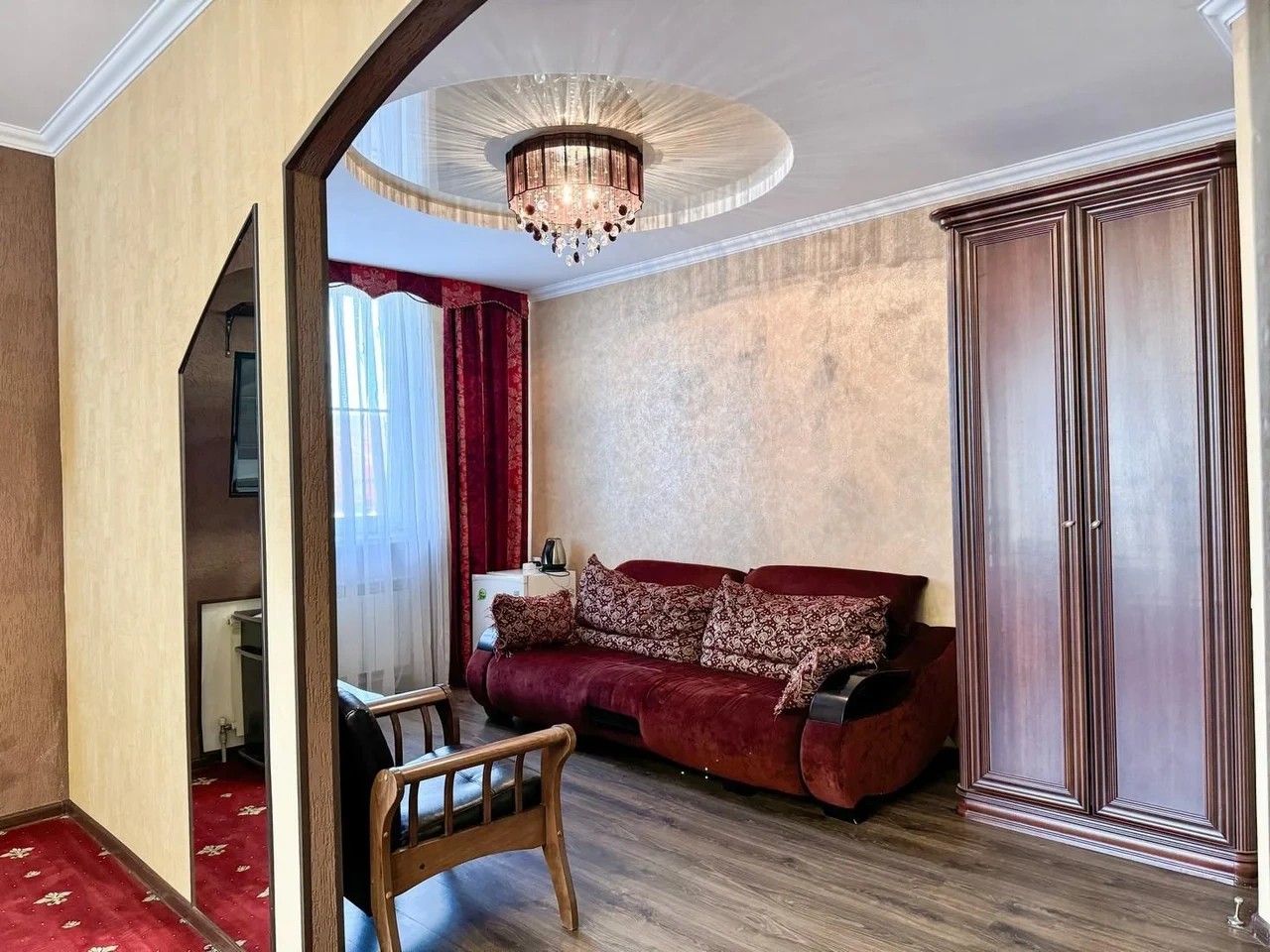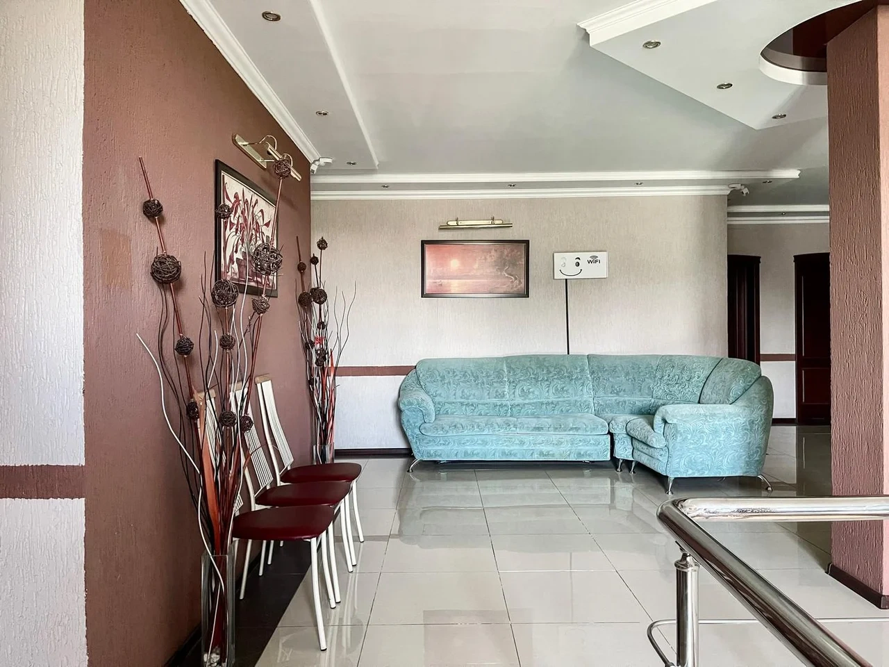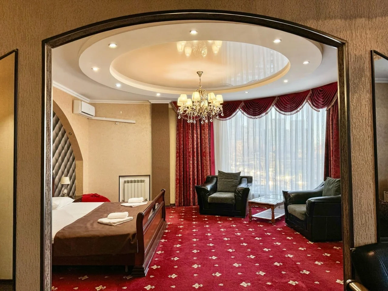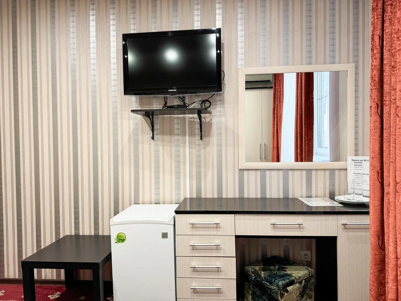 В номере воняет куревом! Вечером внизу (хозяева видимо) жарят шашлык и запах этого шашлыка вместе с дымом в номере. Мебель вся уставшая. Кровать для супружеского долга вообще не подходит, так как если на ней что то делать, то будет слышать все три этажа отеля. Матрац убитый. В санузле стоит джакузи и объявление что она не работает, но это полбеды. Воды в номере нет вообще, она просто идёт тонкой струечкой. Но это ещё тоже ладно, подмыться ещё хоть как то можно. Но как стоять в этой ванной вообще не понятно, так как у джакузи пол не ровный, нужно стоять, точнее сидеть в уголке ванной возле крана, так как вода не идёт совсем. Короче это не гостиница, а недоразумение. Слышимость в гостинице тоже нормальная. Заехали ночью люди всю ночь ругались, орали, но им даже никто не сделал замечание потому что вся администрация спит. Остановиться можно только если едешь на юг на одну ночь и то если не сильно вспотел, так как мыться и спать тут невозможно!!!