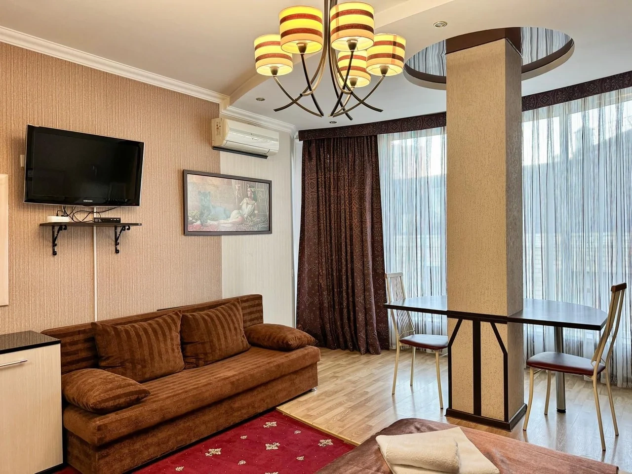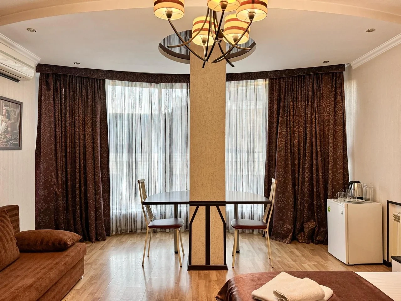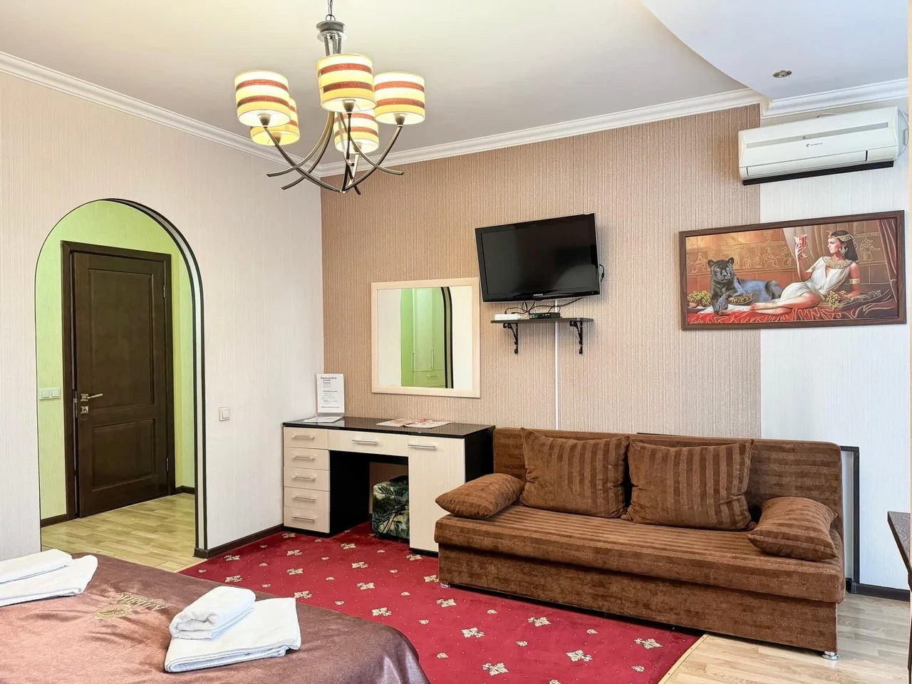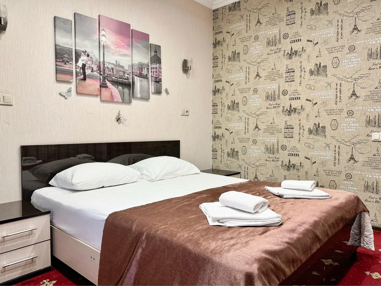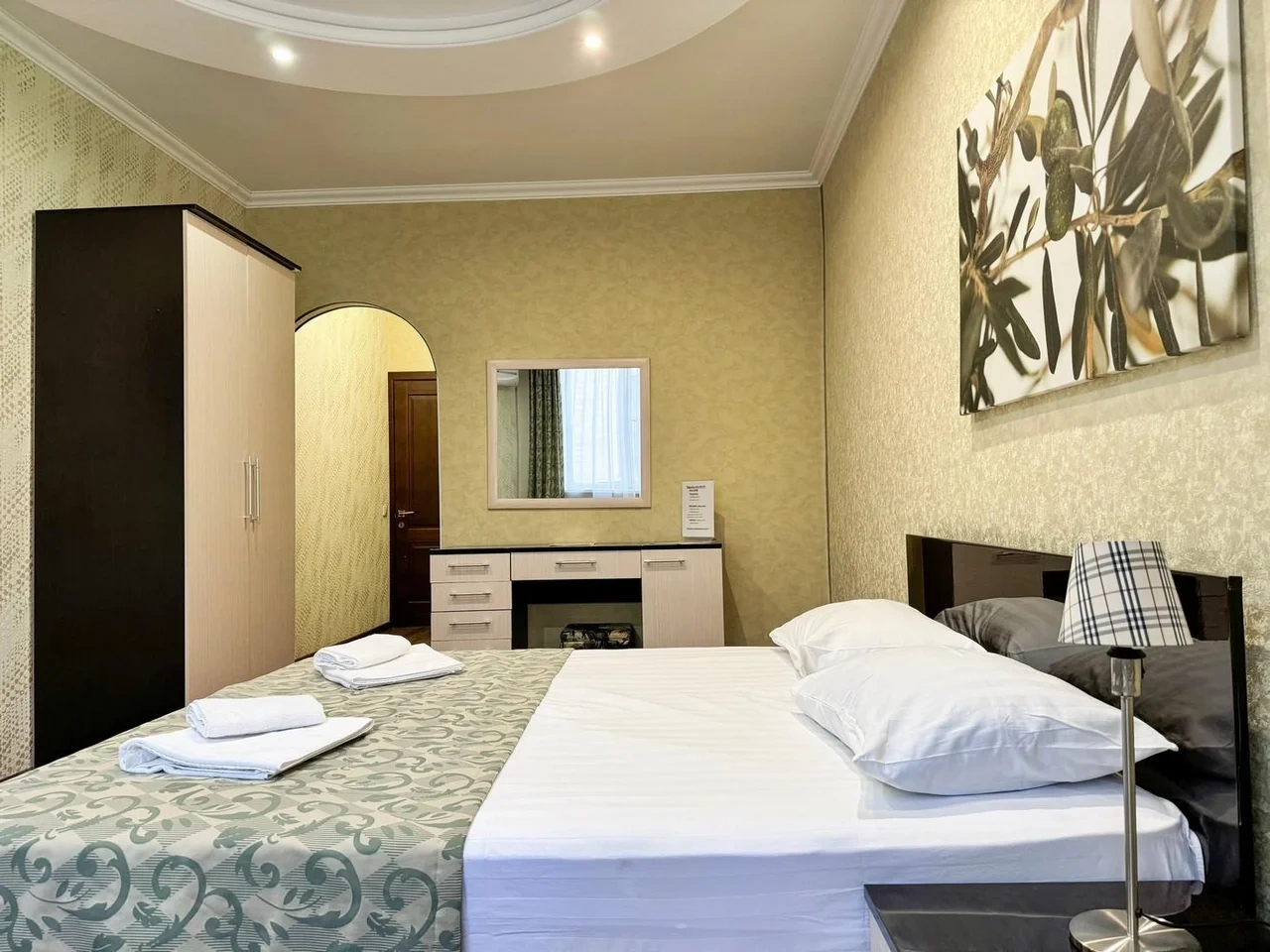 В номере воняет куревом! Вечером внизу (хозяева видимо) жарят шашлык и запах этого шашлыка вместе с дымом в номере. Мебель вся уставшая. Кровать для супружеского долга вообще не подходит, так как если на ней что то делать, то будет слышать все три этажа отеля. Матрац убитый. В санузле стоит джакузи и объявление что она не работает, но это полбеды. Воды в номере нет вообще, она просто идёт тонкой струечкой. Но это ещё тоже ладно, подмыться ещё хоть как то можно. Но как стоять в этой ванной вообще не понятно, так как у джакузи пол не ровный, нужно стоять, точнее сидеть в уголке ванной возле крана, так как вода не идёт совсем. Короче это не гостиница, а недоразумение. Слышимость в гостинице тоже нормальная. Заехали ночью люди всю ночь ругались, орали, но им даже никто не сделал замечание потому что вся администрация спит. Остановиться можно только если едешь на юг на одну ночь и то если не сильно вспотел, так как мыться и спать тут невозможно!!!