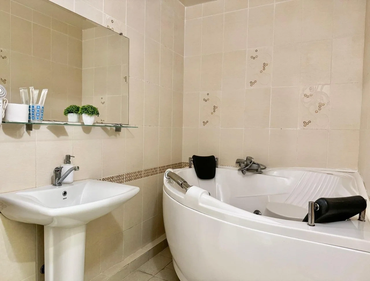 Кровать шикарная, бельё кристально белое и чистое. Ванная комната это бомба.