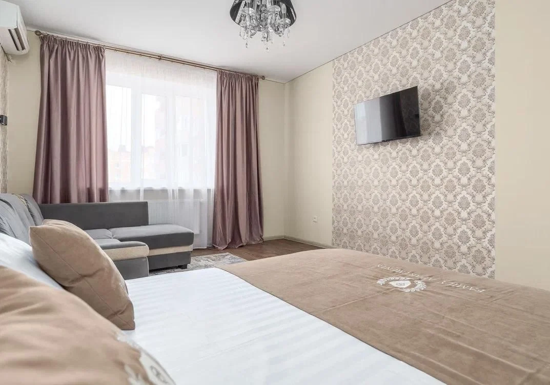 В первом ряду от стадиона и парка, со всеми необходимыми пренадлежностями для посуточного проживания