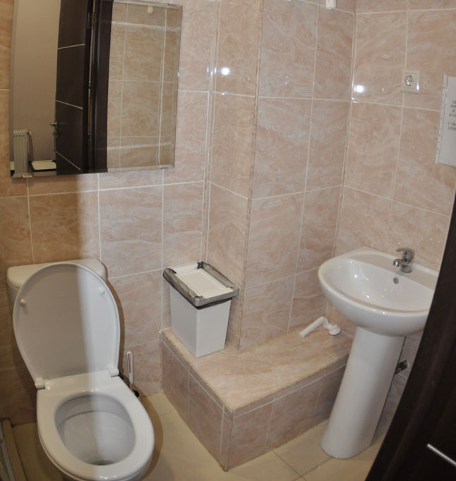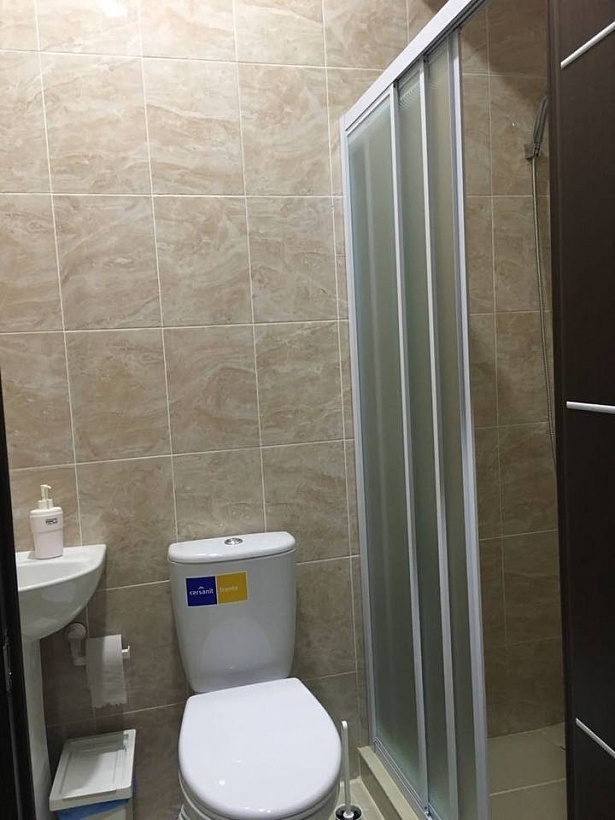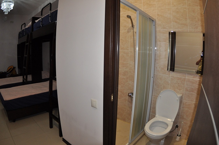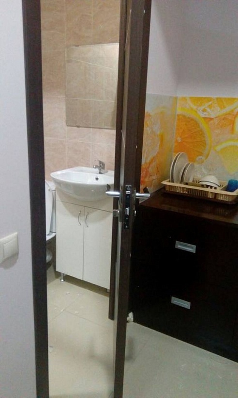 5). Номер большой, а туалет не присесть. Коленки в ведро упираются.