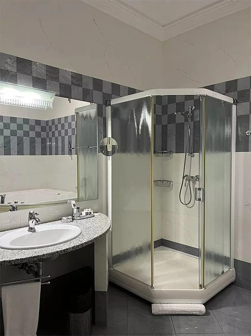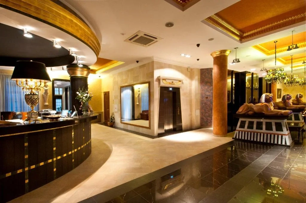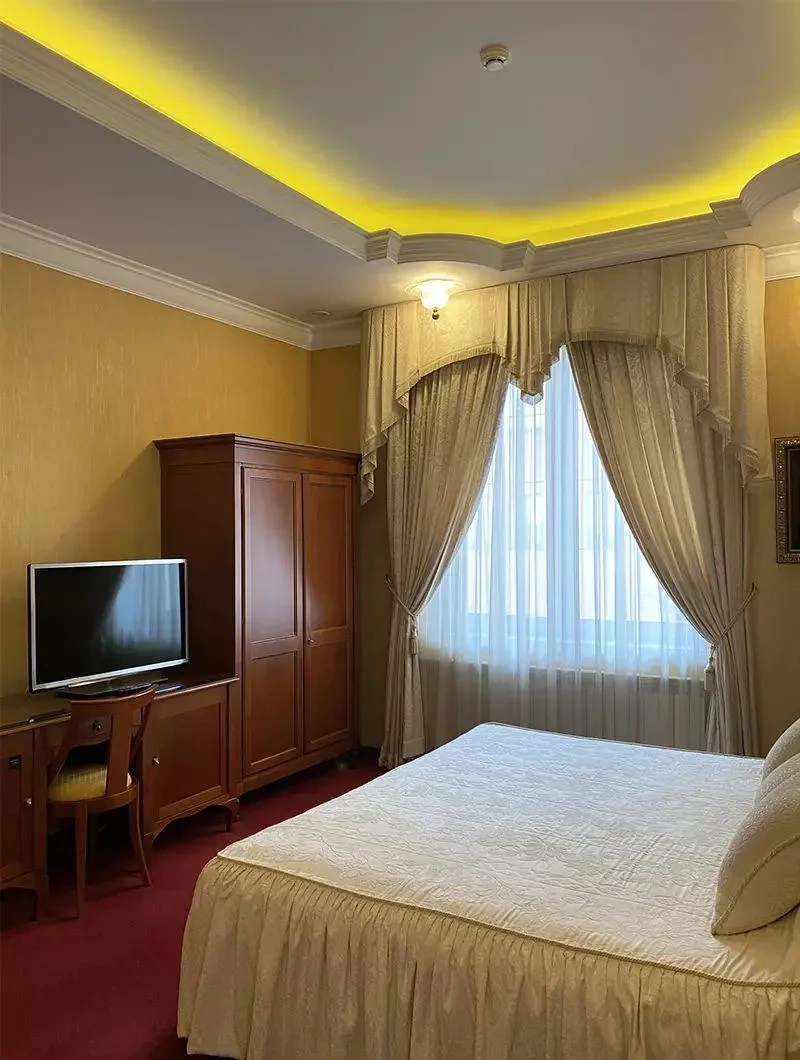 Встретили в закрытом отеле, около 12 часов ночи было. Далее при оплате возник вопрос с терминалом, сказали или переводом оплачивайте, или нас не поселят в отеле. Сделали перевод, подымаемся на лифте на этаж, и тут полный мрак на этаже не было света вообще, с телефон светили искали включатель света. В мини баре такие цены, что таких просто нет , ни в одном отеле. Утром на первом этаже, захотели выпить кофе, сказали что идите на вверх возьмите в аппарате, а потом у нас оплатите. И все это в пятизвездном отеле, всего лишь за 14.000 за номер. Поверьте есть с чем сравнивать.