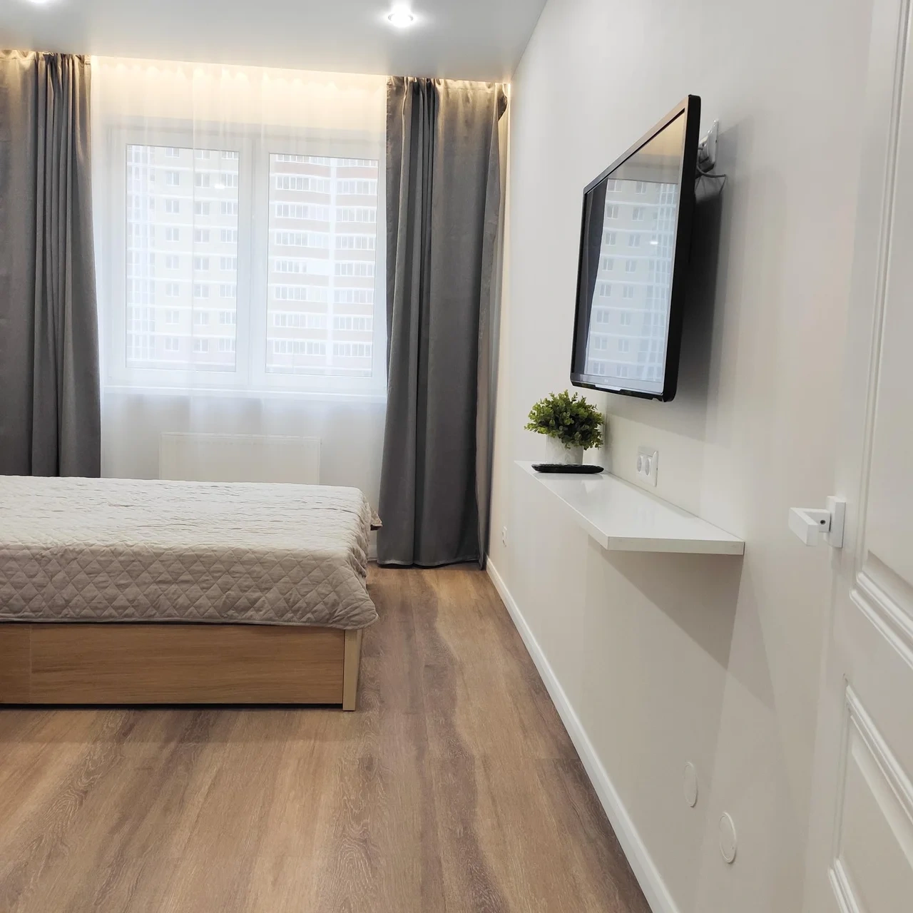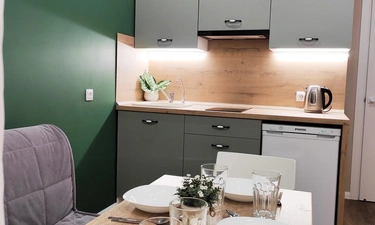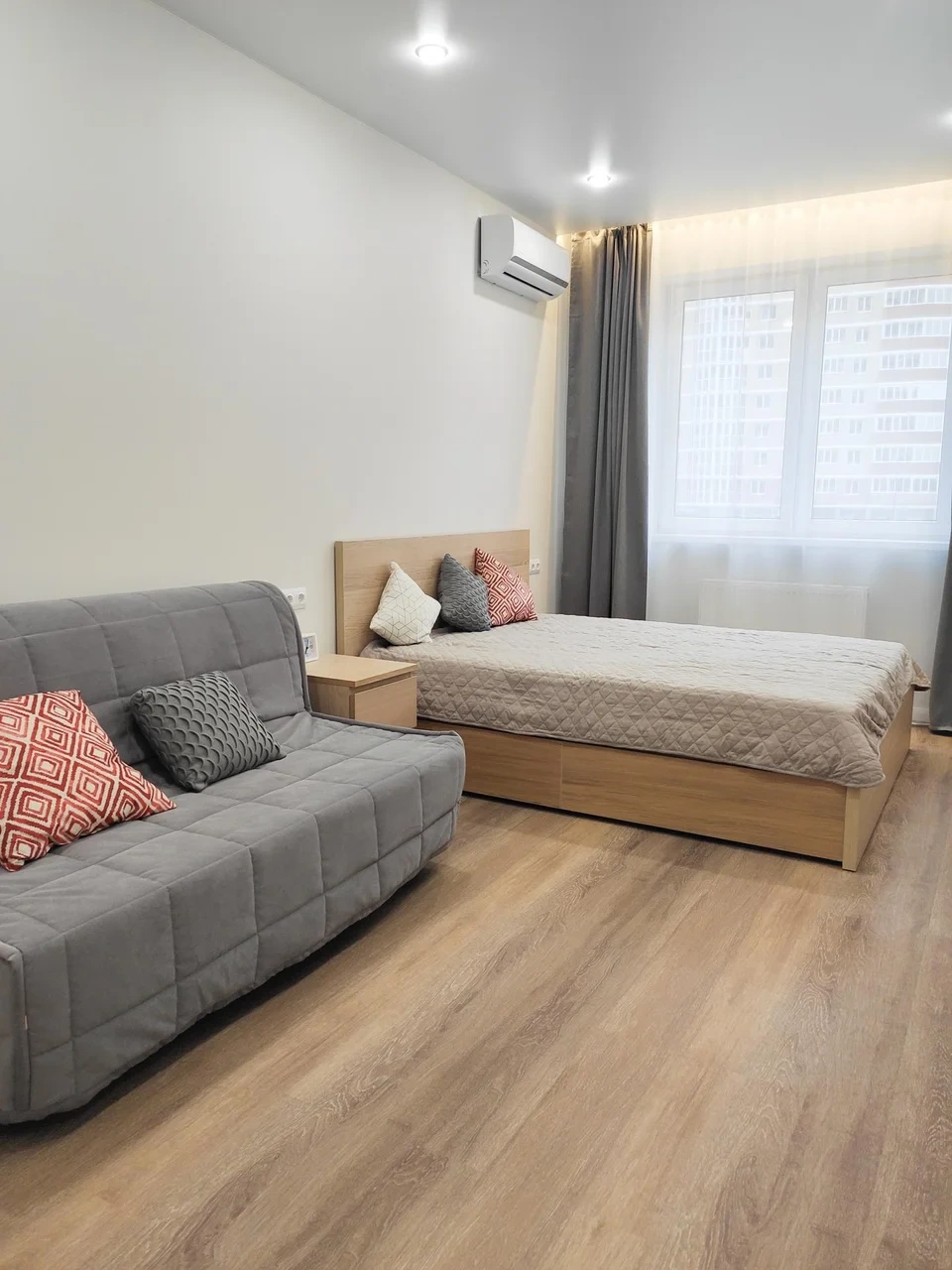 Квартира оборудована мебелью, техникой, посудой, мелкими бытовыми принадлежностями, текстилем. До 5 гостей.