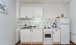 -плита, холодильник, микроволновая печь, чайник, набор посуды;