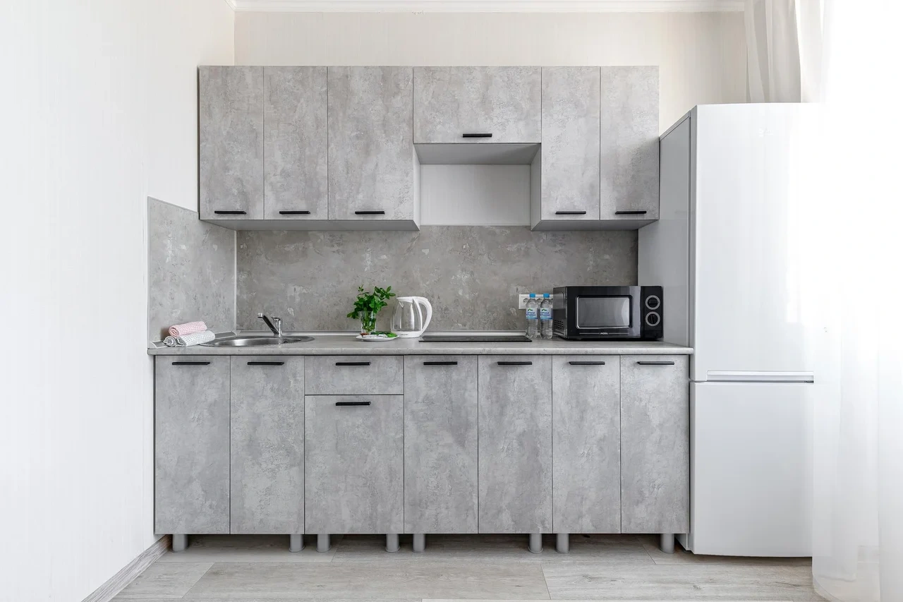 - бытовая техника (большой холодильник, микроволновая печь, чайник, стиральная машина, утюг, фен, телевизор);