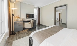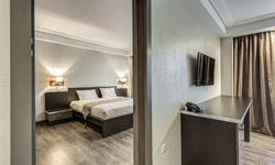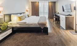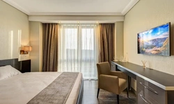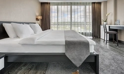 Для более комфортного отдыха в каждом номере установлена удобная кровать King-size с качественным ортопедическим матрасом, гипоаллергенными подушками и одеялом. Используется премиальное постельное белье из страйп сатина (100% хлопок).