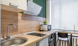 - Стильный кухонный гарнитур со всем необходимым для приготовления любимой домашней еды (техника, кухонные принадлежности, посуда, столовые приборы)