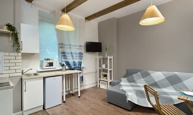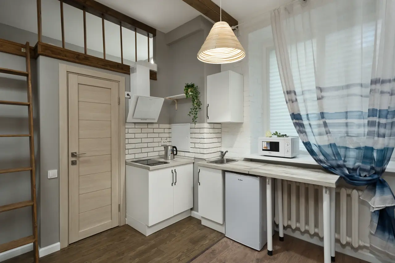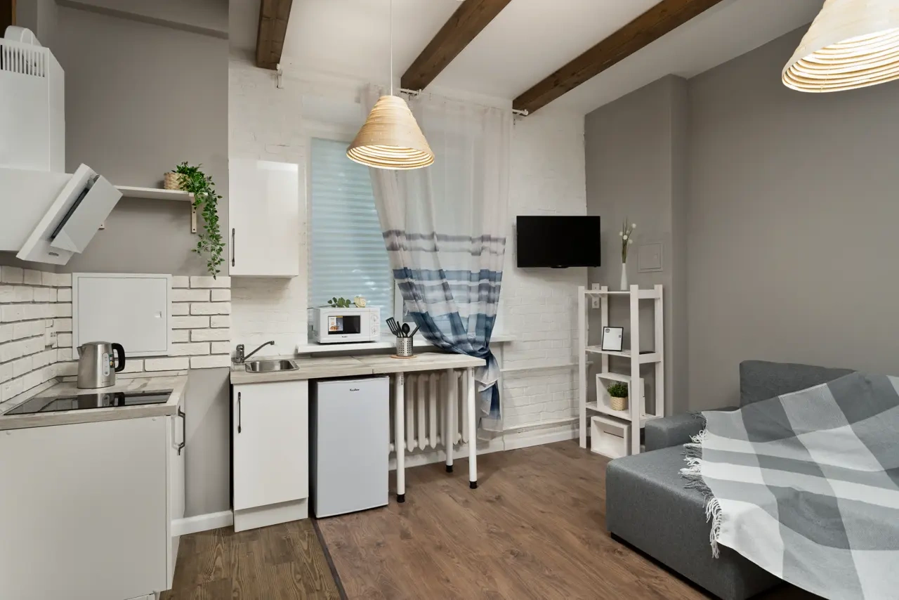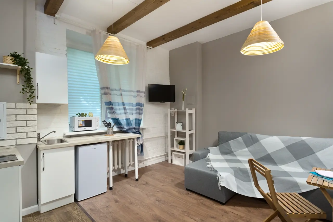 Большой удобный диван, смарт тв, кухня, совмещенный санузел, новый ремонт в стиле лофт. Бесконтактное заселение, всегда чистое белье и посуда для приготовления пищи.