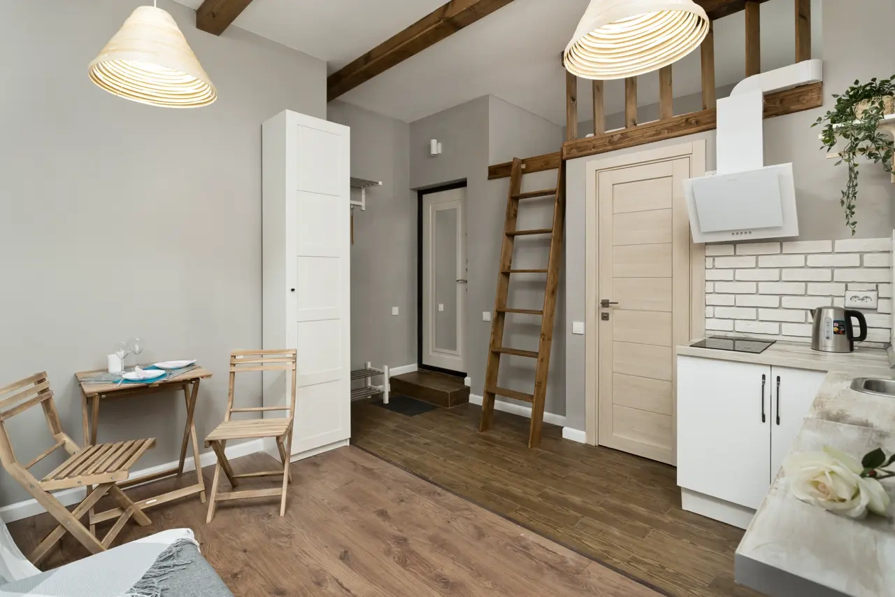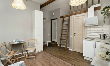 Для семьи до 4х человек, два дополнительных спальных места на антресоли за дополнительную плату.