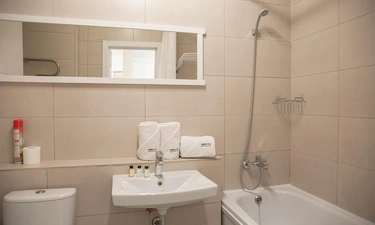 · - Гигиенические принадлежности (шампунь, гель для душа, мыло и одноразовые тапочки)