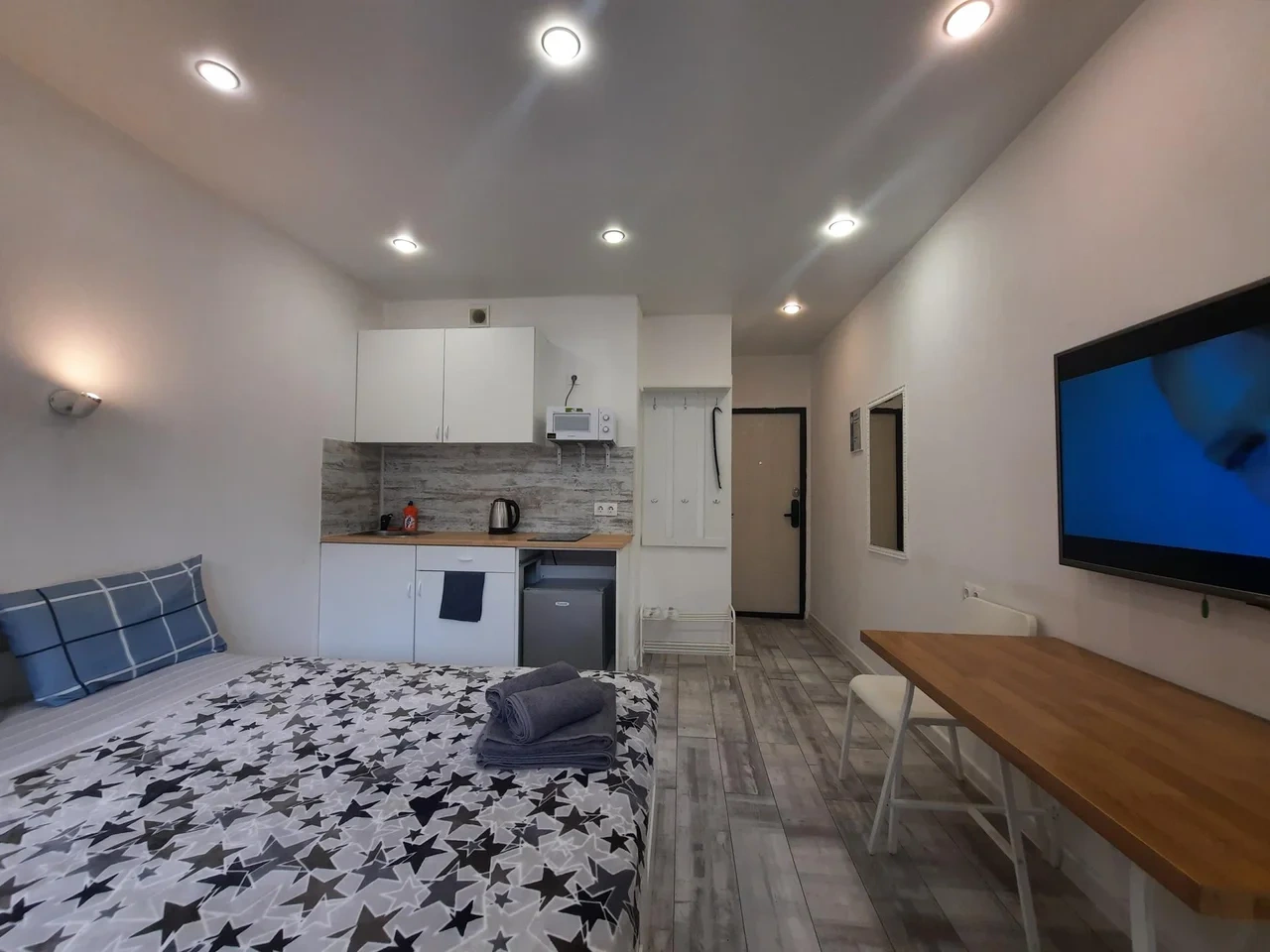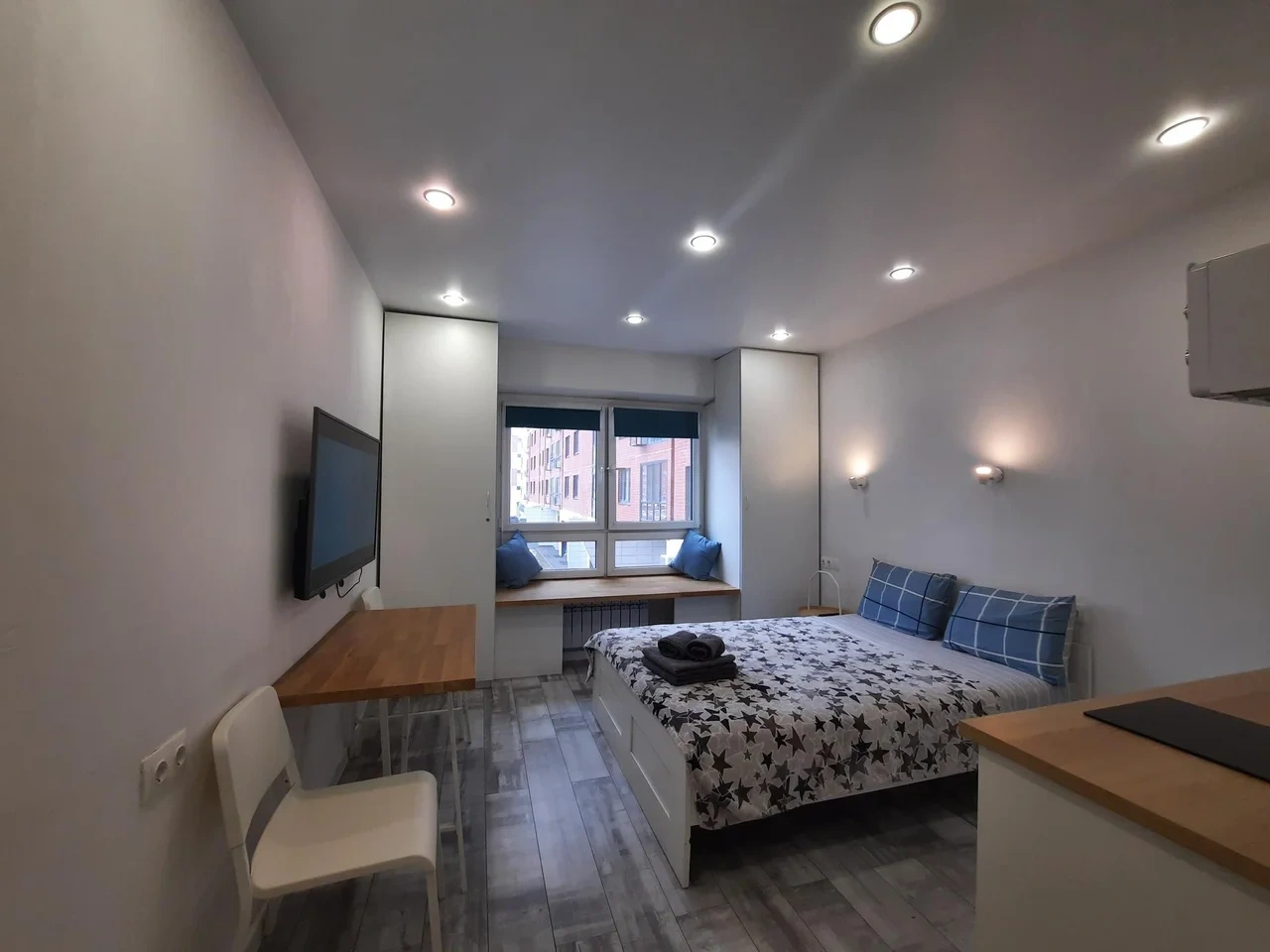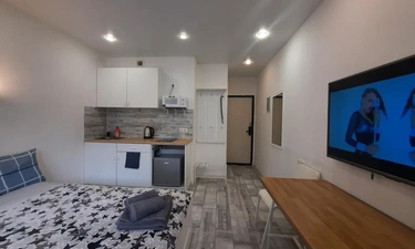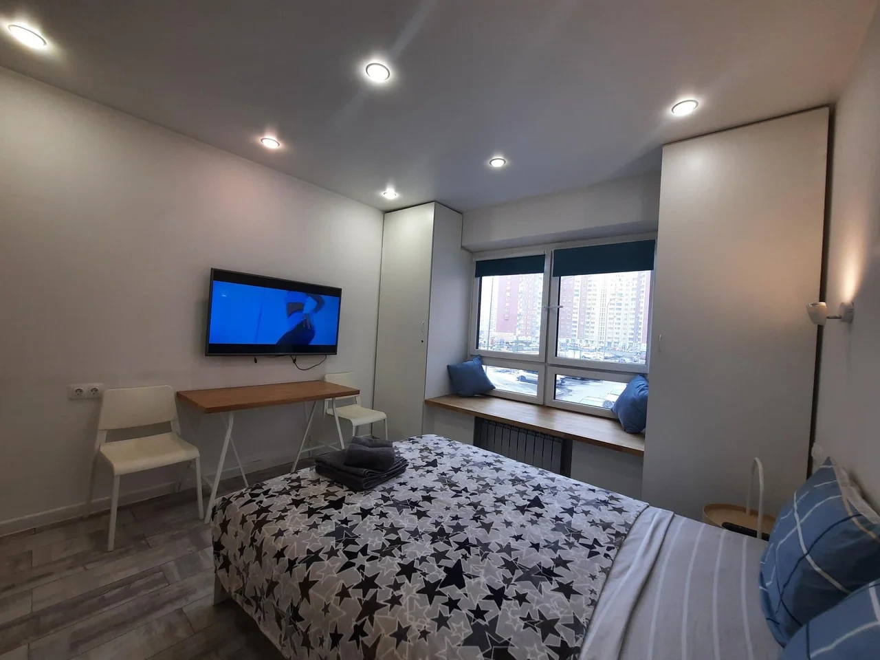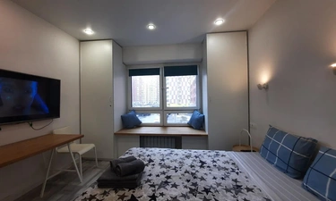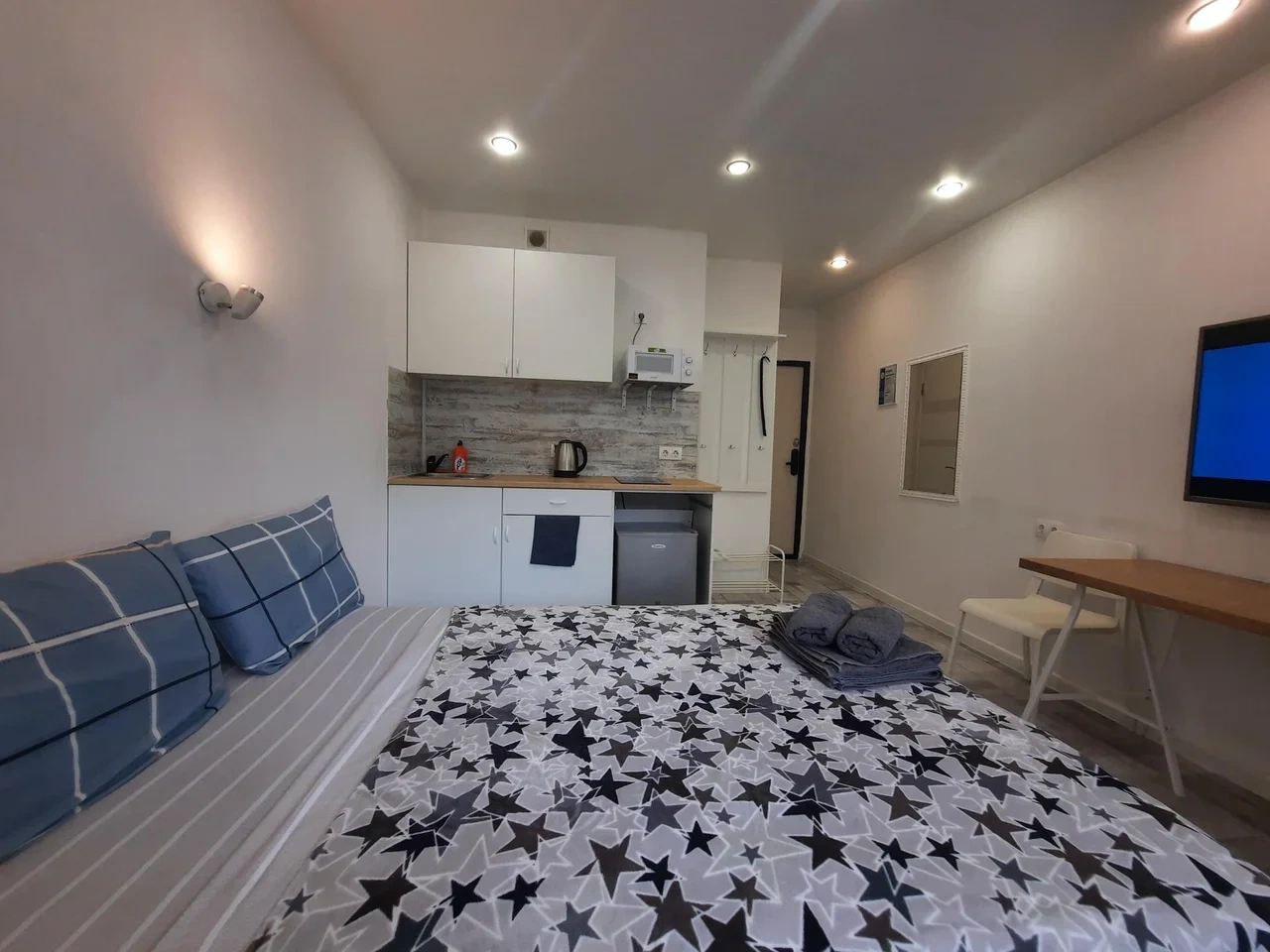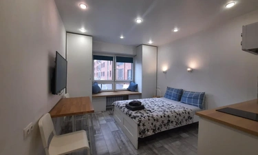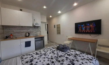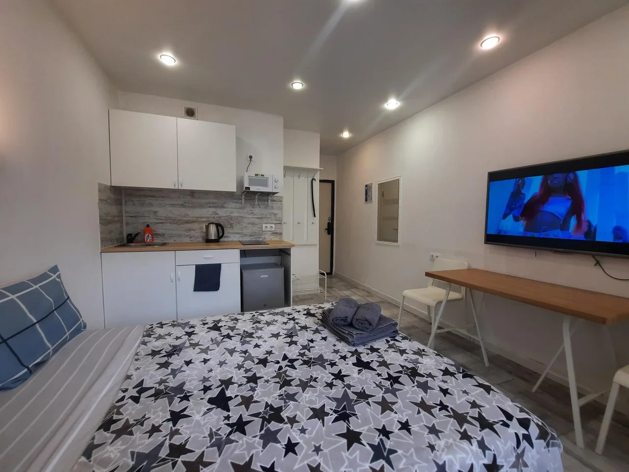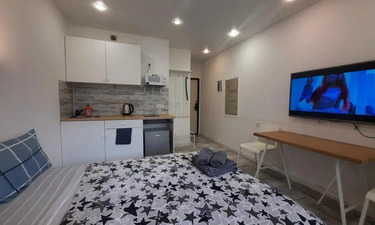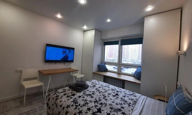 В квартире имеется двуспальная кровать с удобным ортопедическим матрасом. Большой шкаф, телевизор диагональю 50, smart tv, 220 каналов.