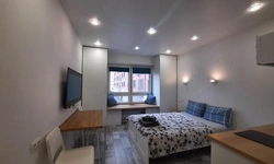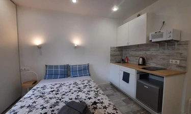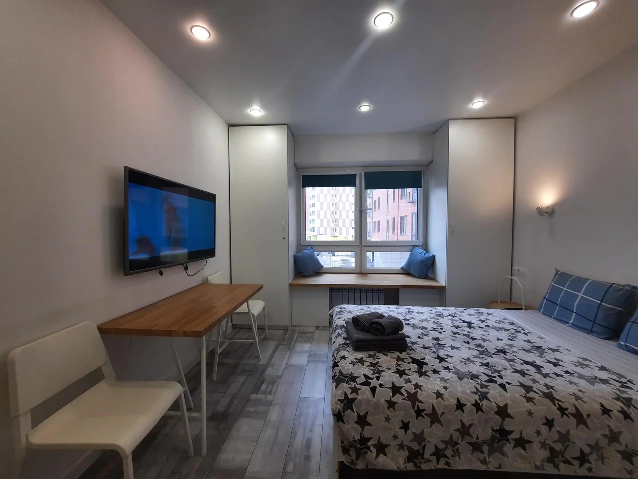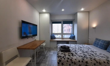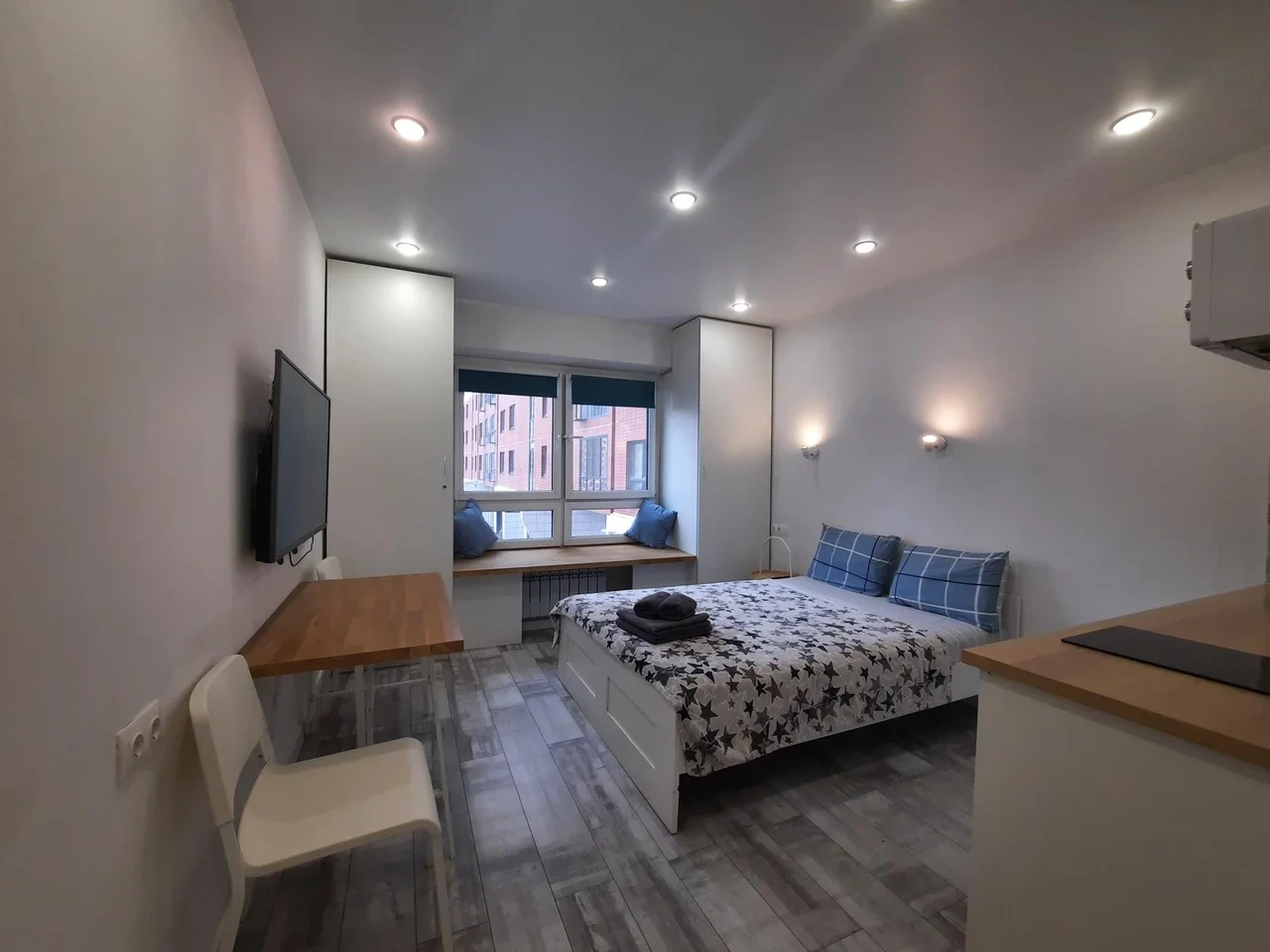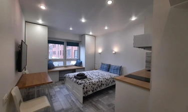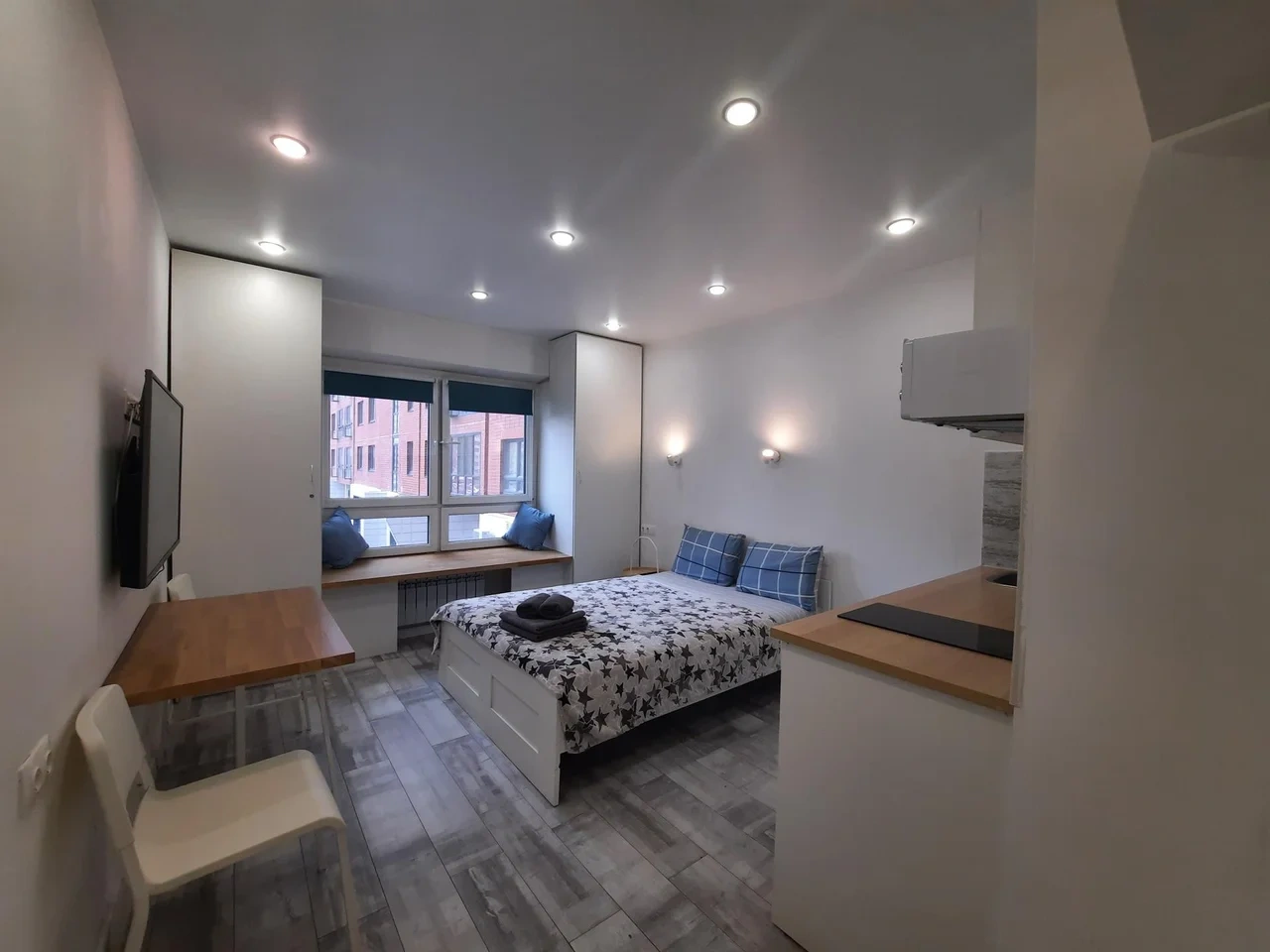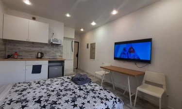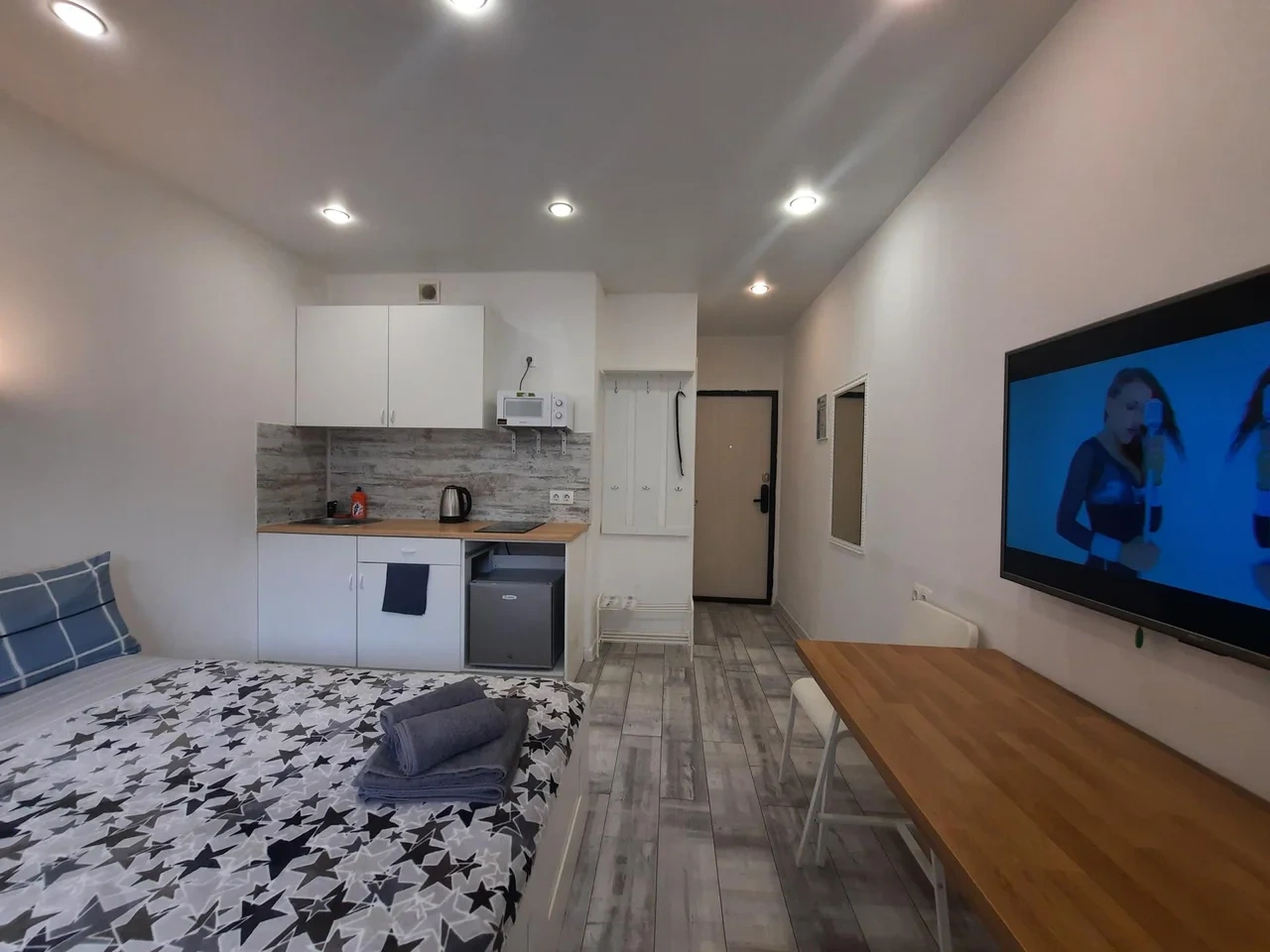 В квартире имеется двуспальная кровать с удобным ортопедическим матрасом. Большой шкаф, телевизор диагональю 50, smart tv, 220 каналов.