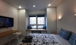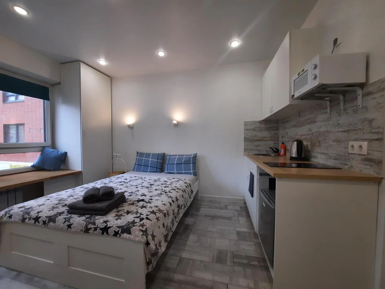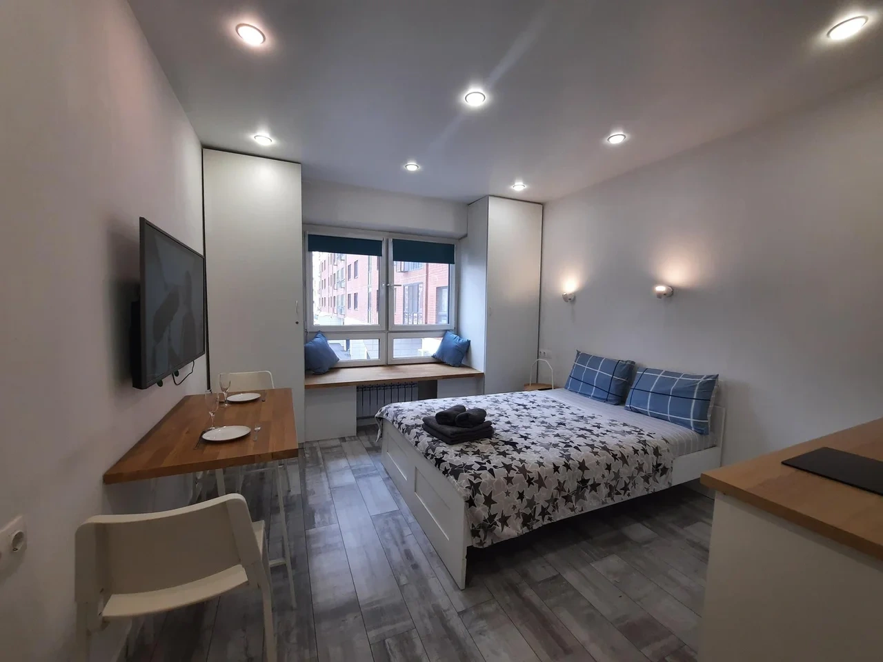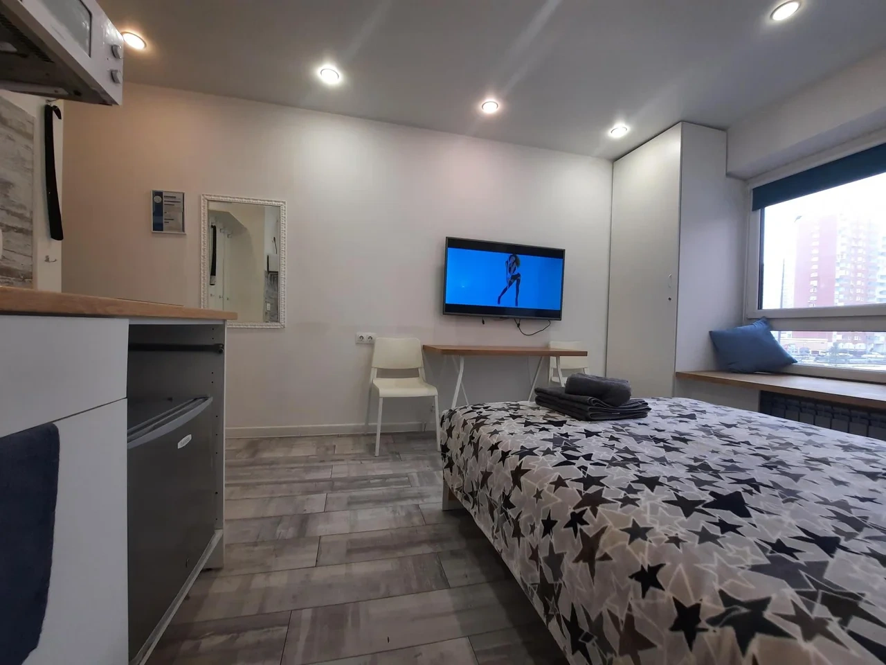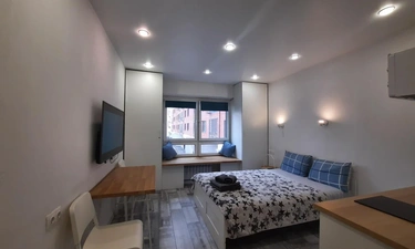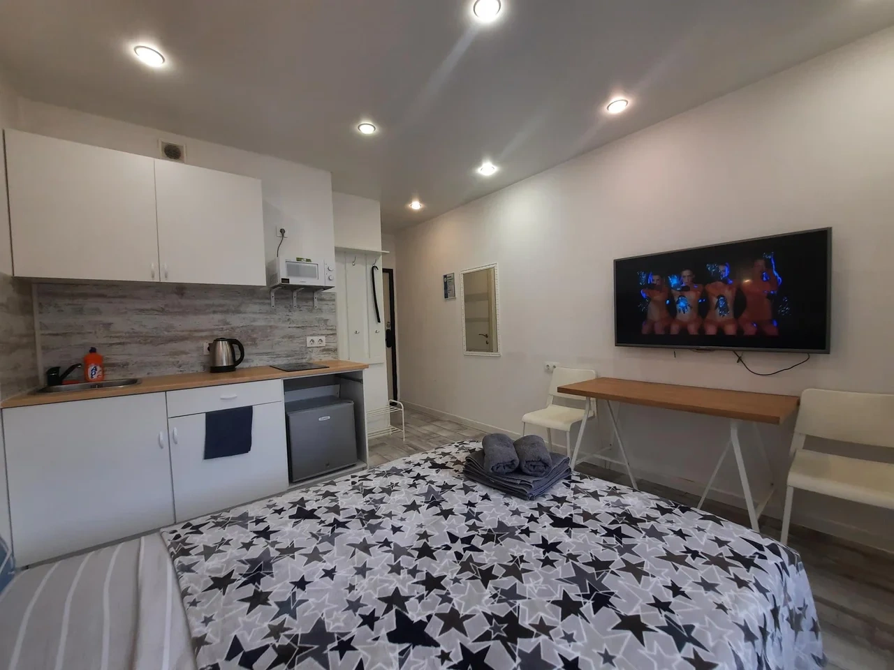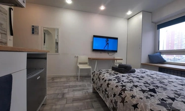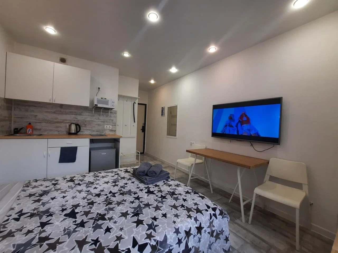 В квартире имеется двуспальная кровать с удобным ортопедическим матрасом. Большой шкаф, телевизор диагональю 50, smart tv, 220 каналов.