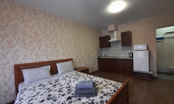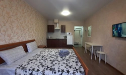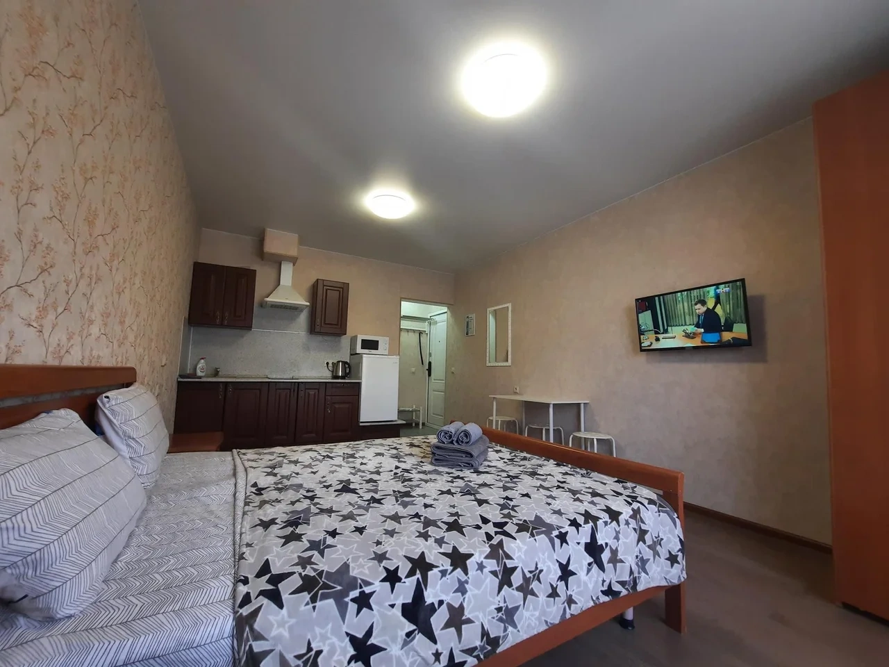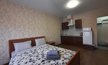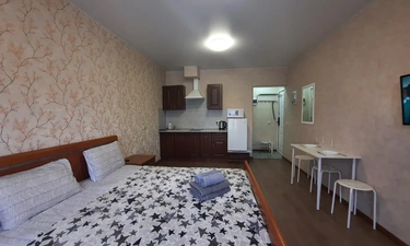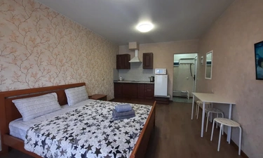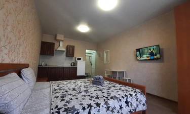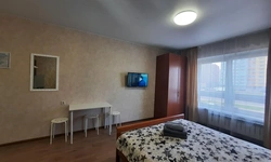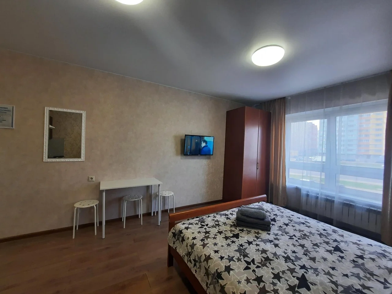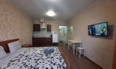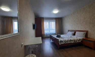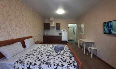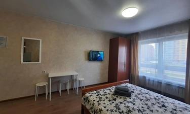 В квартире имеется двуспальная кровать с удобным ортопедическим матрасом. Плательный шкаф, телевизор.
