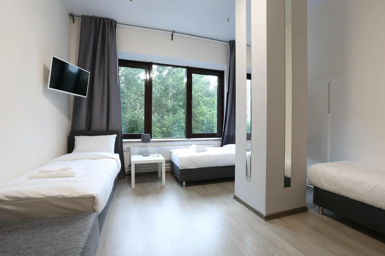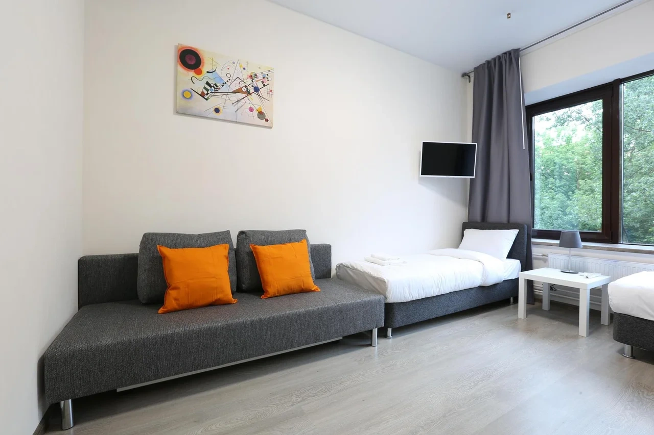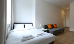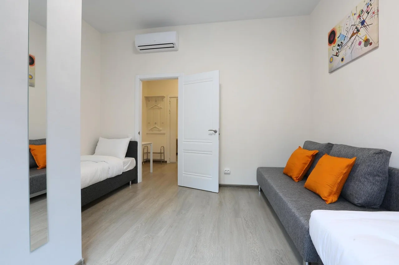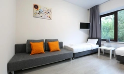 Студия для 4 гостей со всеми удобствами. Кровать трансформер, может быть как двуспальной, как и двумя односпальными. Предупредите заранее, пожалуйста, как вам необходимо застелить кровать.
