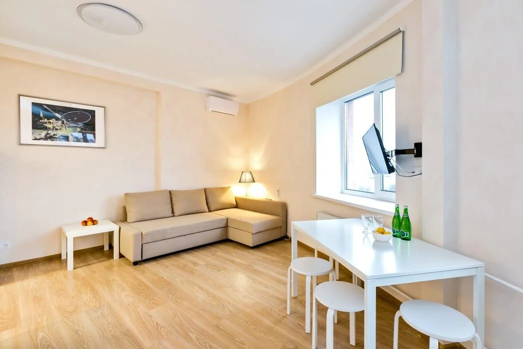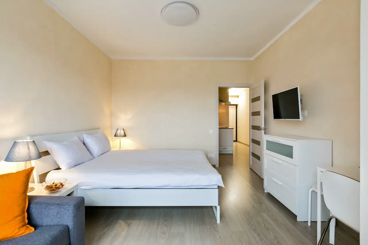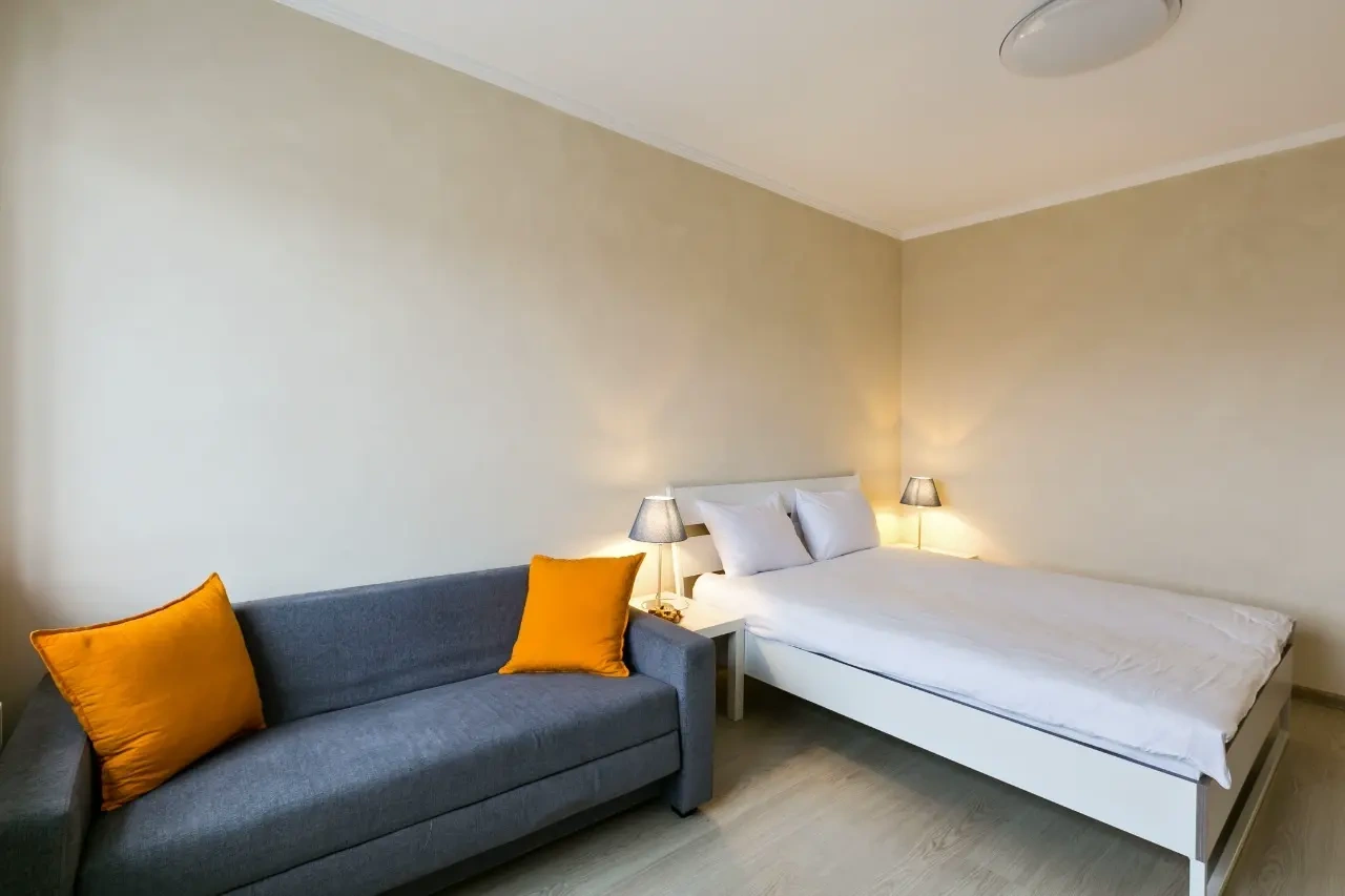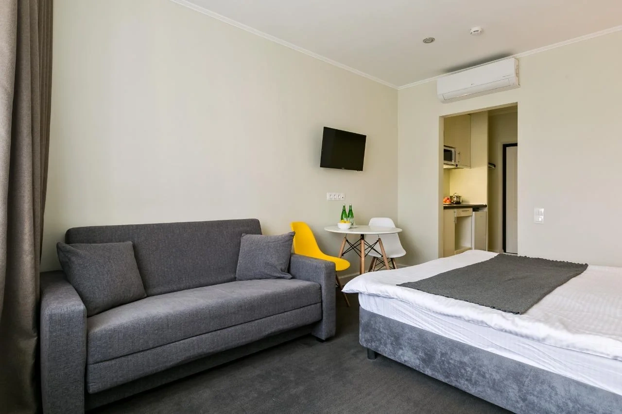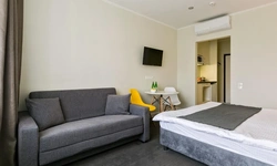 Апартаменты для комфортного проживания 4 гостей, спальня отдельно, просторная гостиная объединена с кухонным уголком.