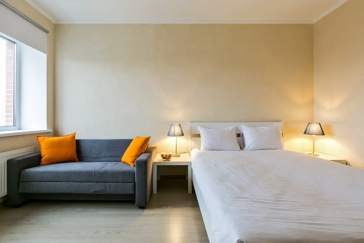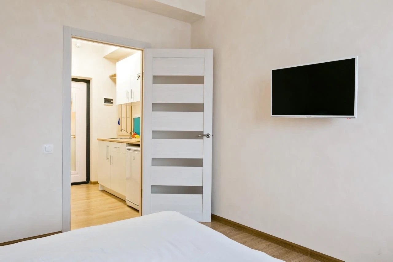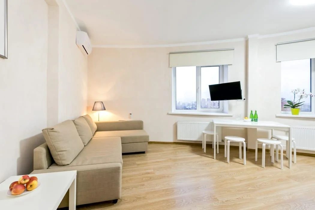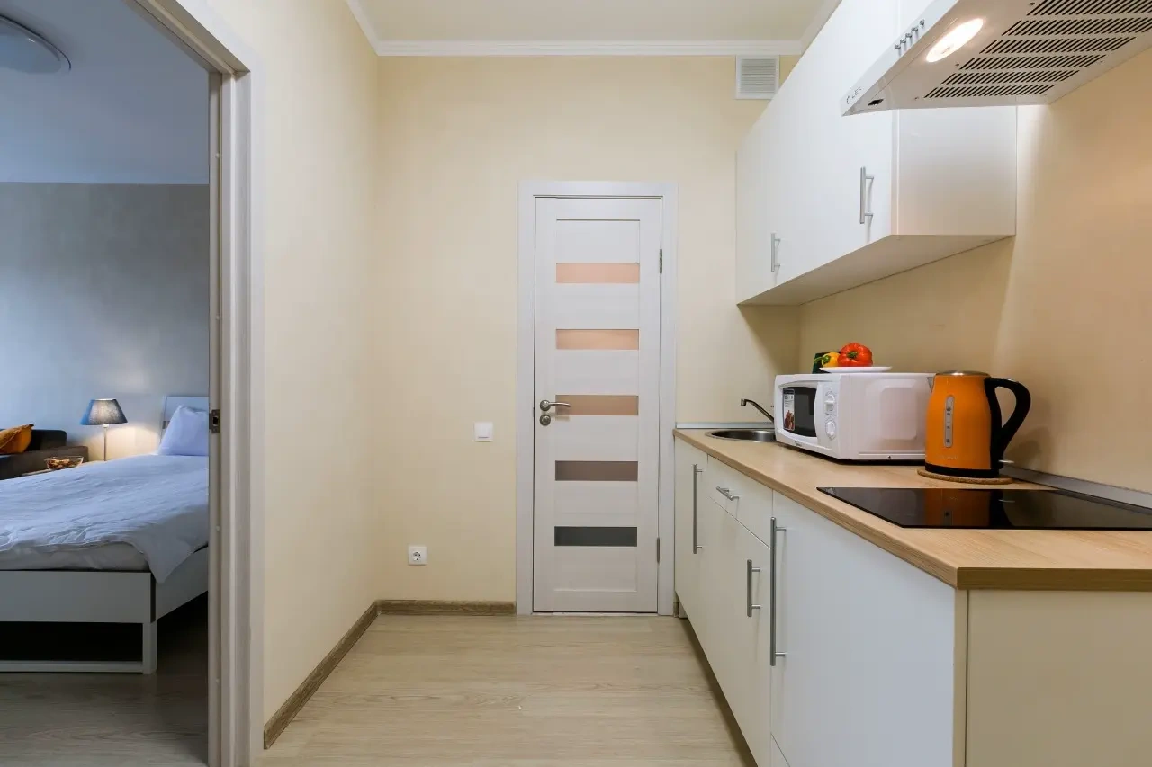 Апартаменты для комфортного проживания 4 гостей, спальня отдельно, просторная гостиная объединена с кухонным уголком.